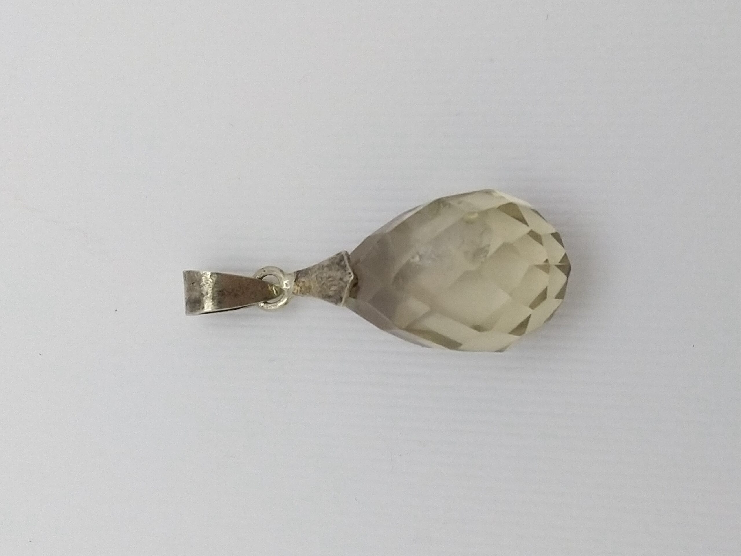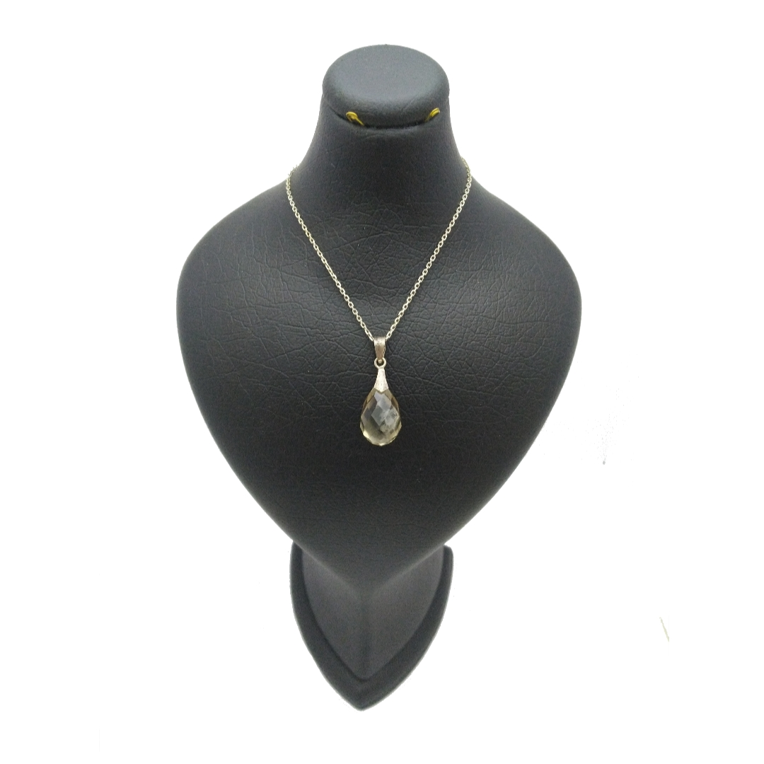 آویز سنگ کوارتز دودی تراش اشک با گیره نقره عیار 925 وزن 3.6 گرم