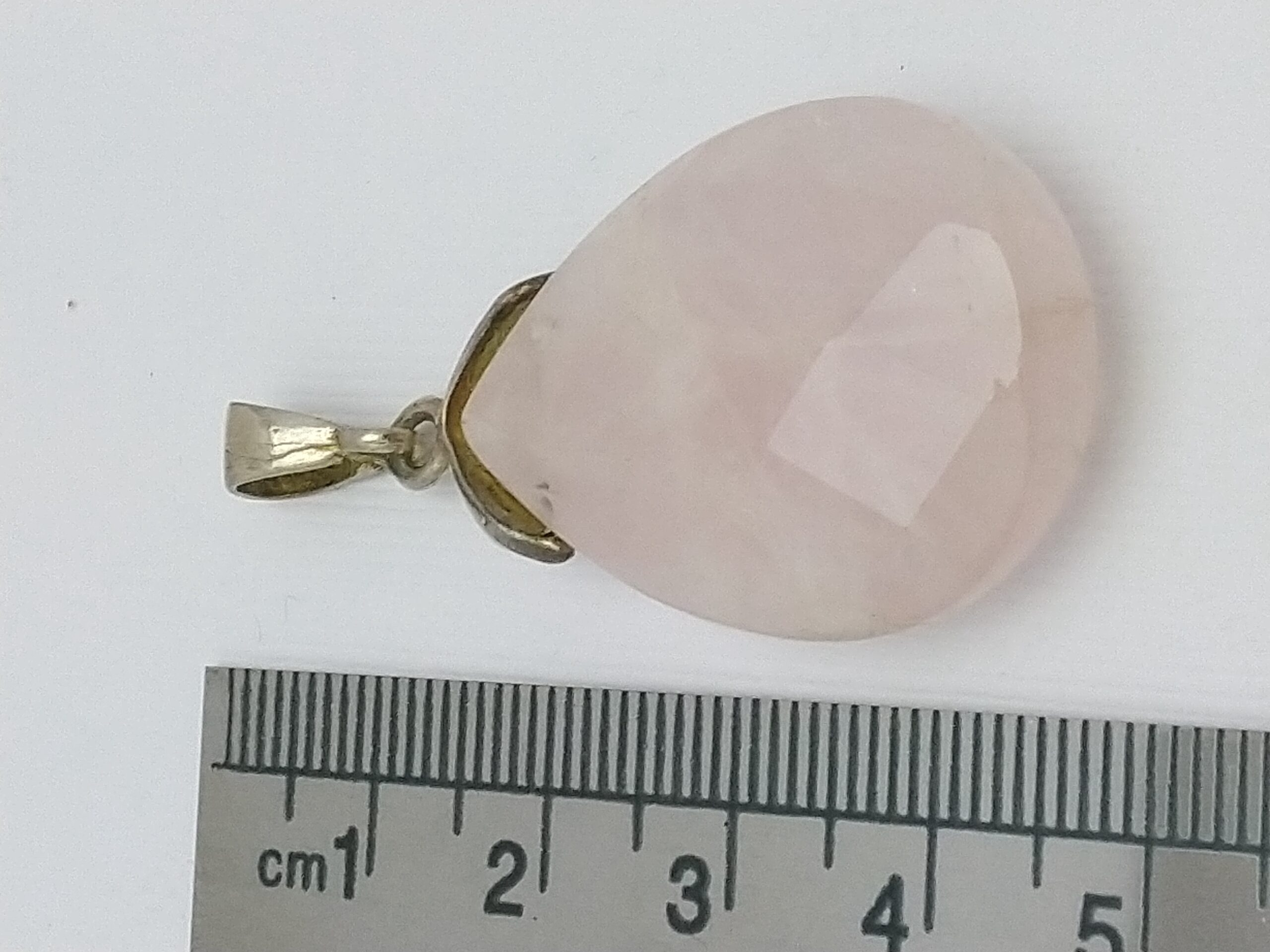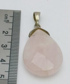 آویز سنگ کوارتز صورتی اشک دو رو تراش با گیره نقره عیار 925 بدون زنجیر وزن 9.9 گرم