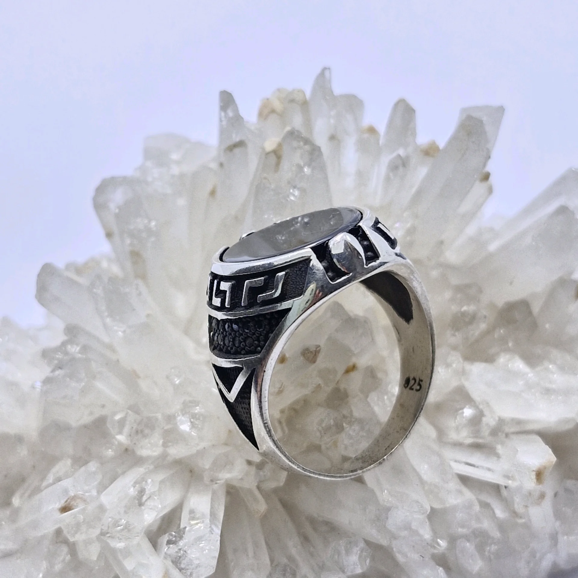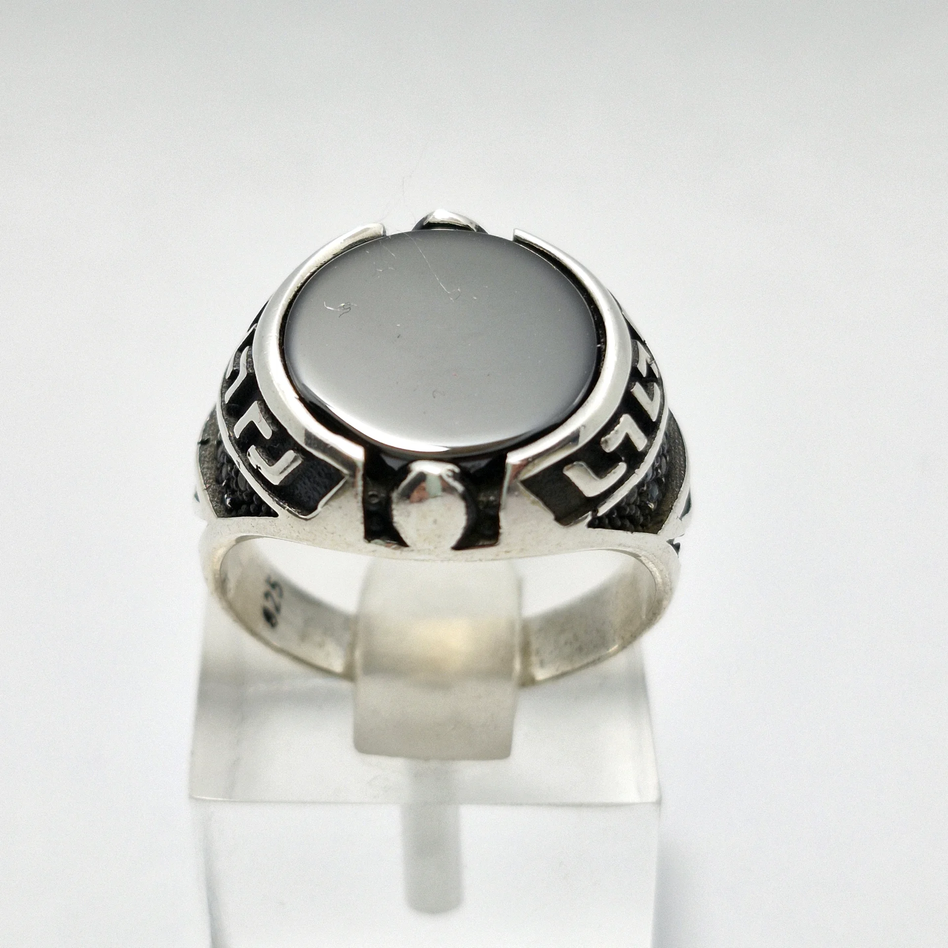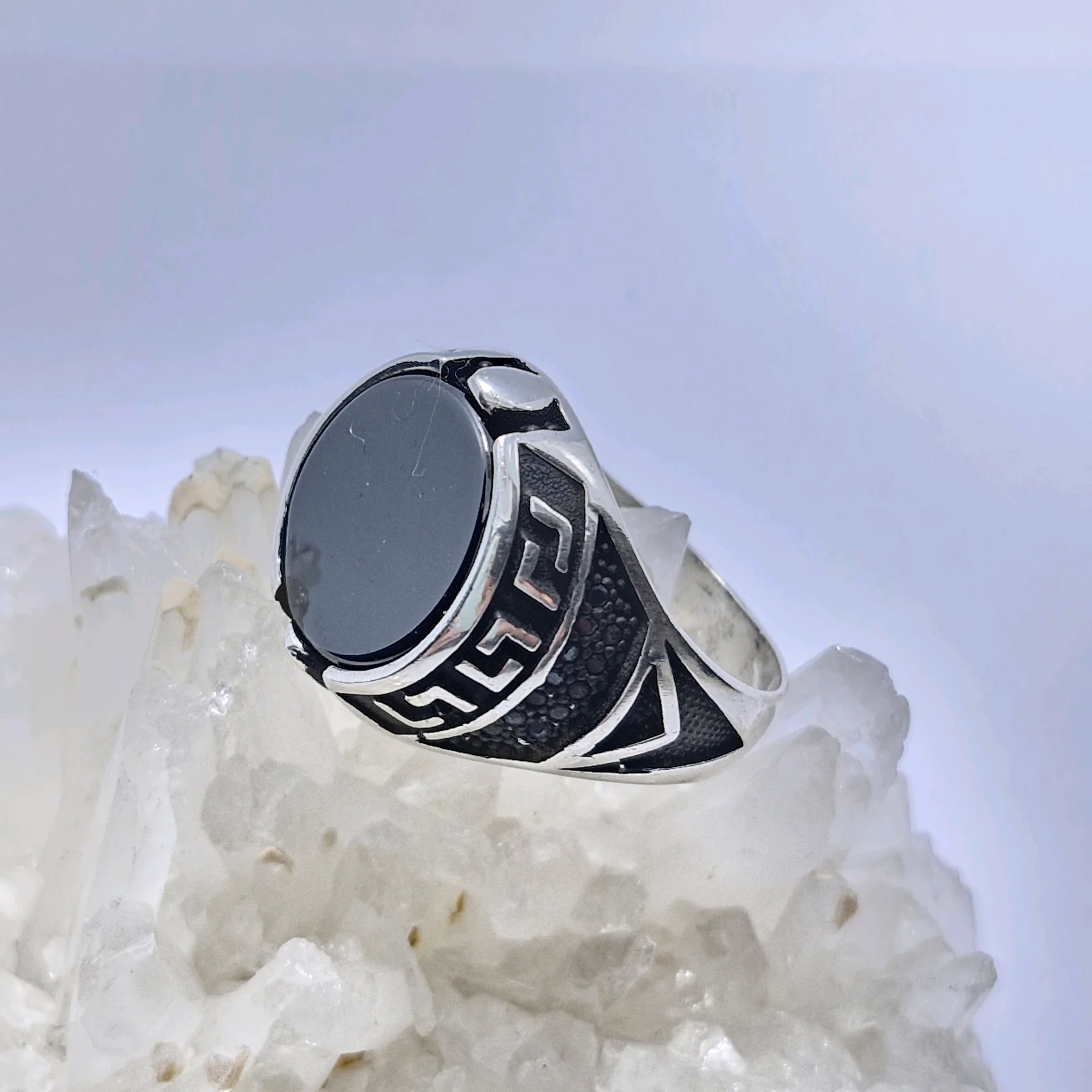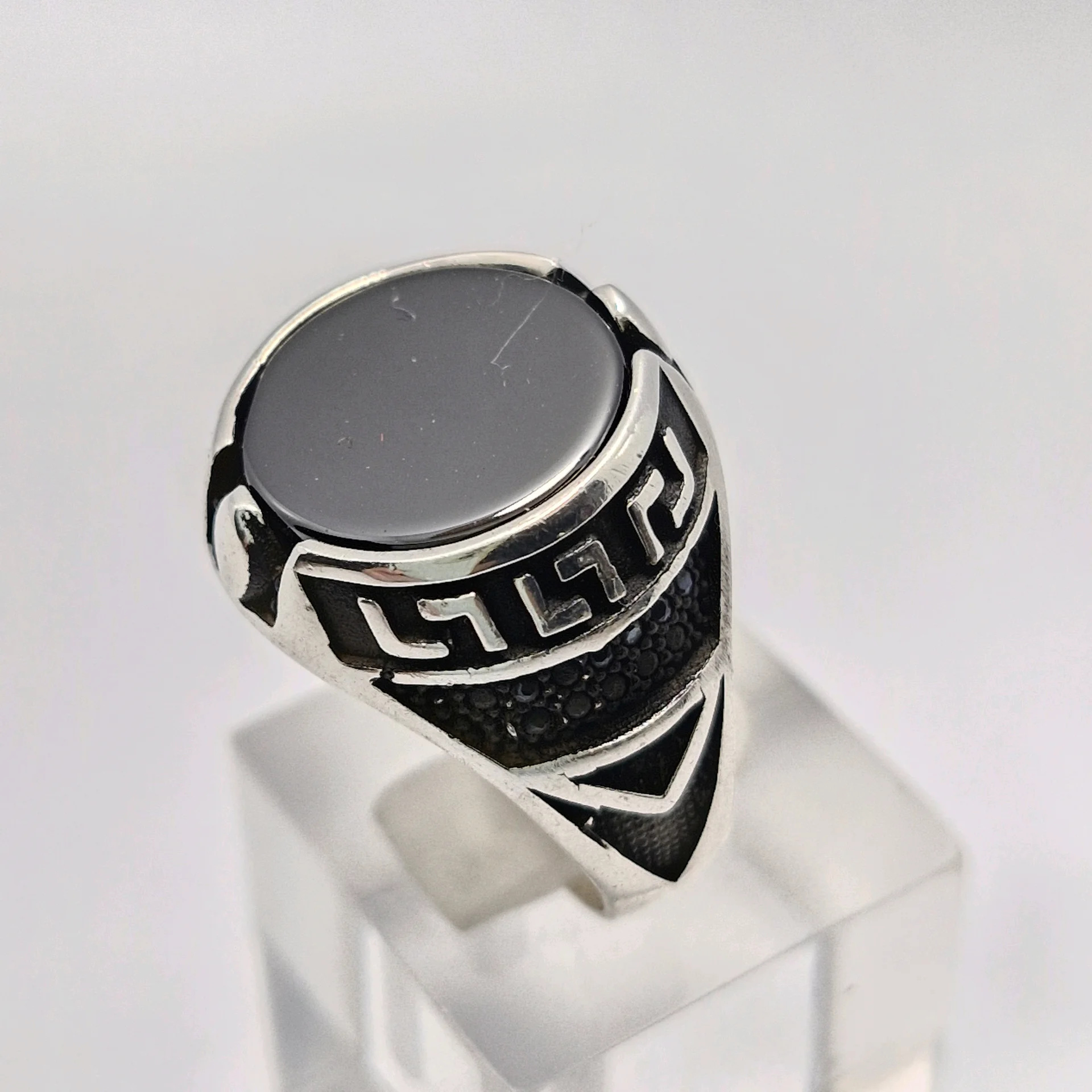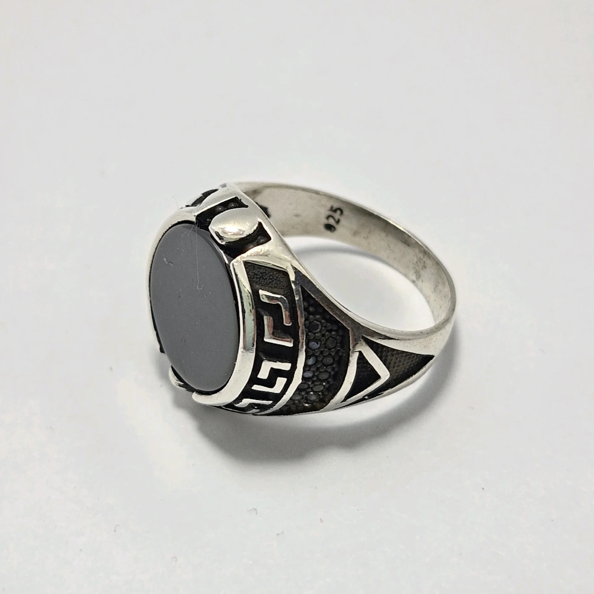 انگشتر نقره سیاه قلم ، نگین سیاه اتمی تخخ مردانه و پسرانه کد Z189 سایز ۹، عیار ۹۲۵ ، وزن ۹.۸۵ گرم است. رکاب خوش دست و راحت مناسب استفاده روزمره می باشد.