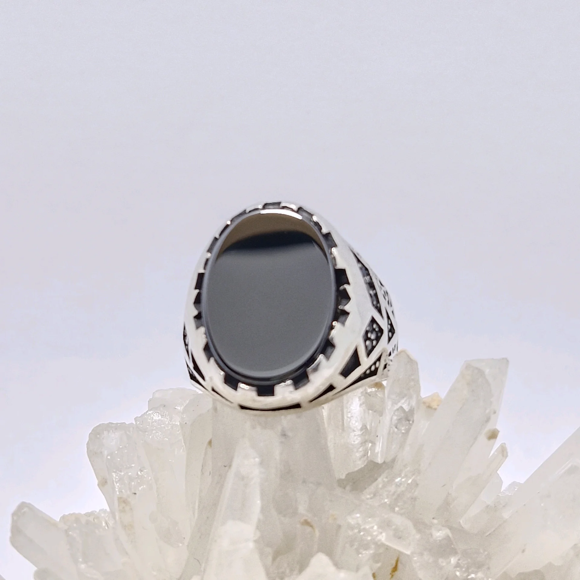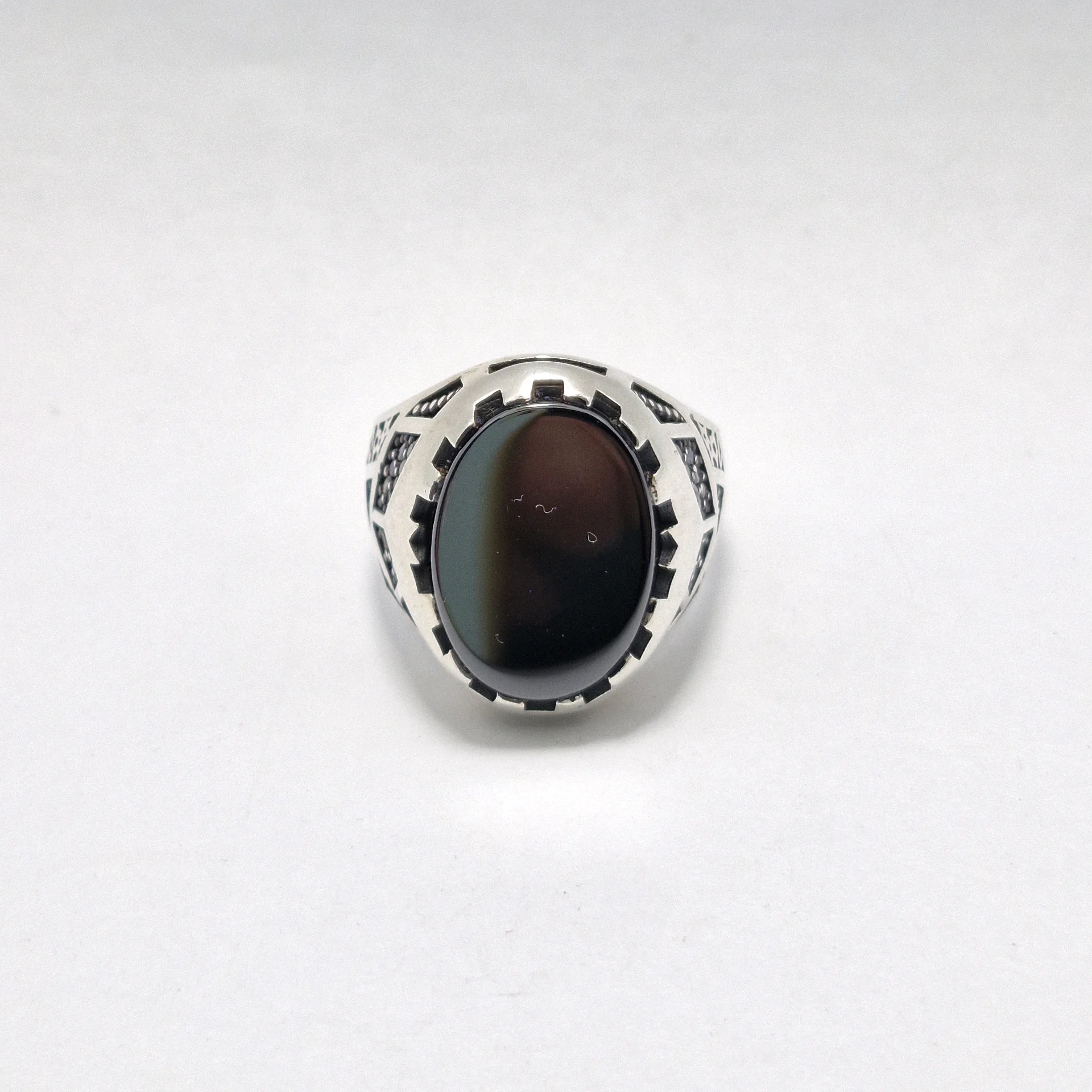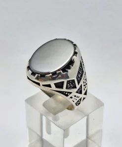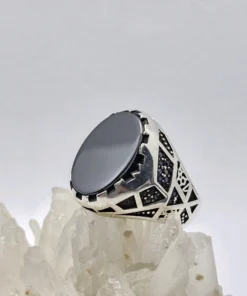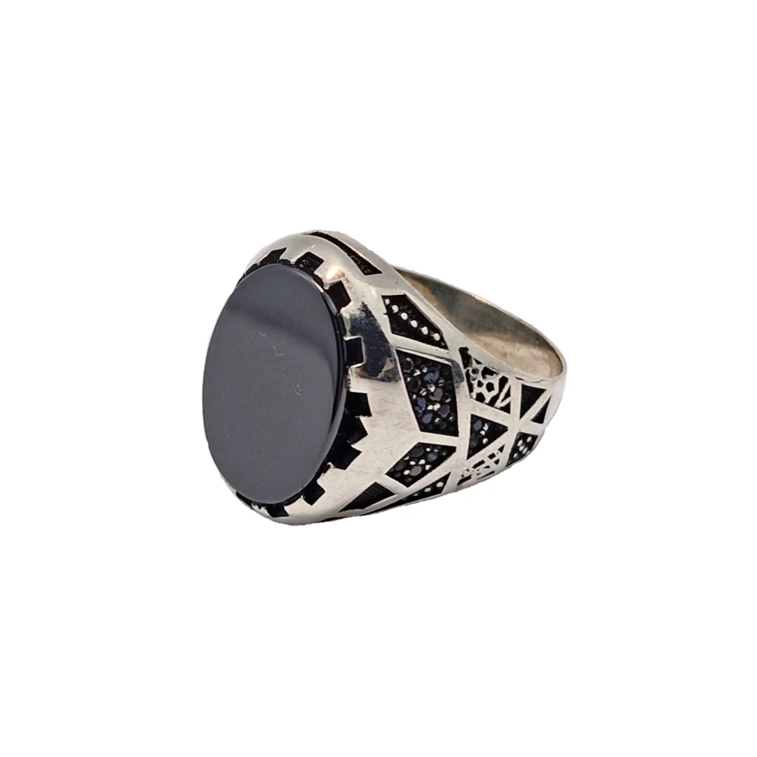 انگشتر نقره سیاه قلم مدل آرمان ، نگین سیاه اتمی مردانه و پسرانه کد Z214 سایز ۱۰، عیار ۹۲۵ ، وزن ۱۰.۹۶ گرم است. رکاب خوش دست و راحت مناسب استفاده روزمره می باشد.