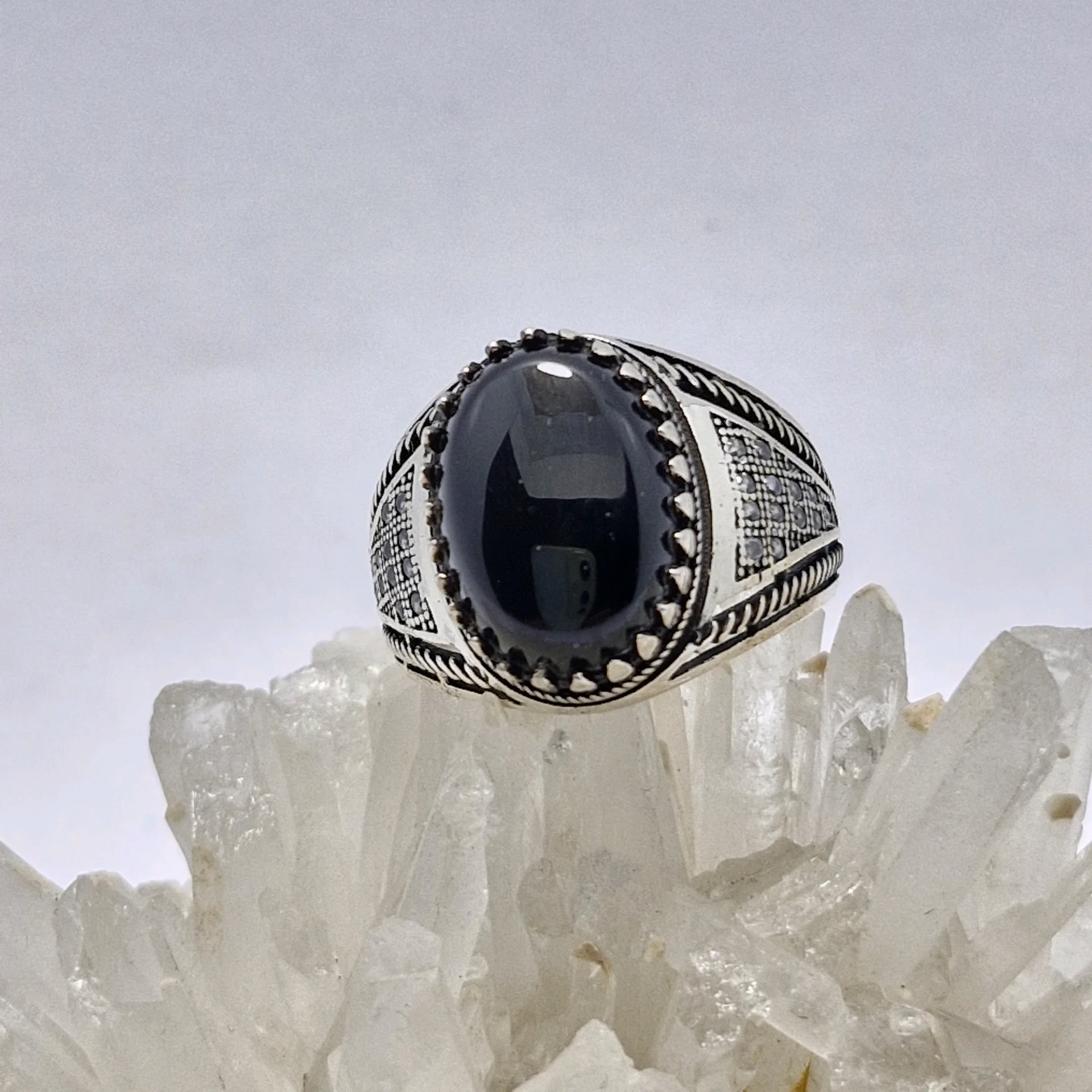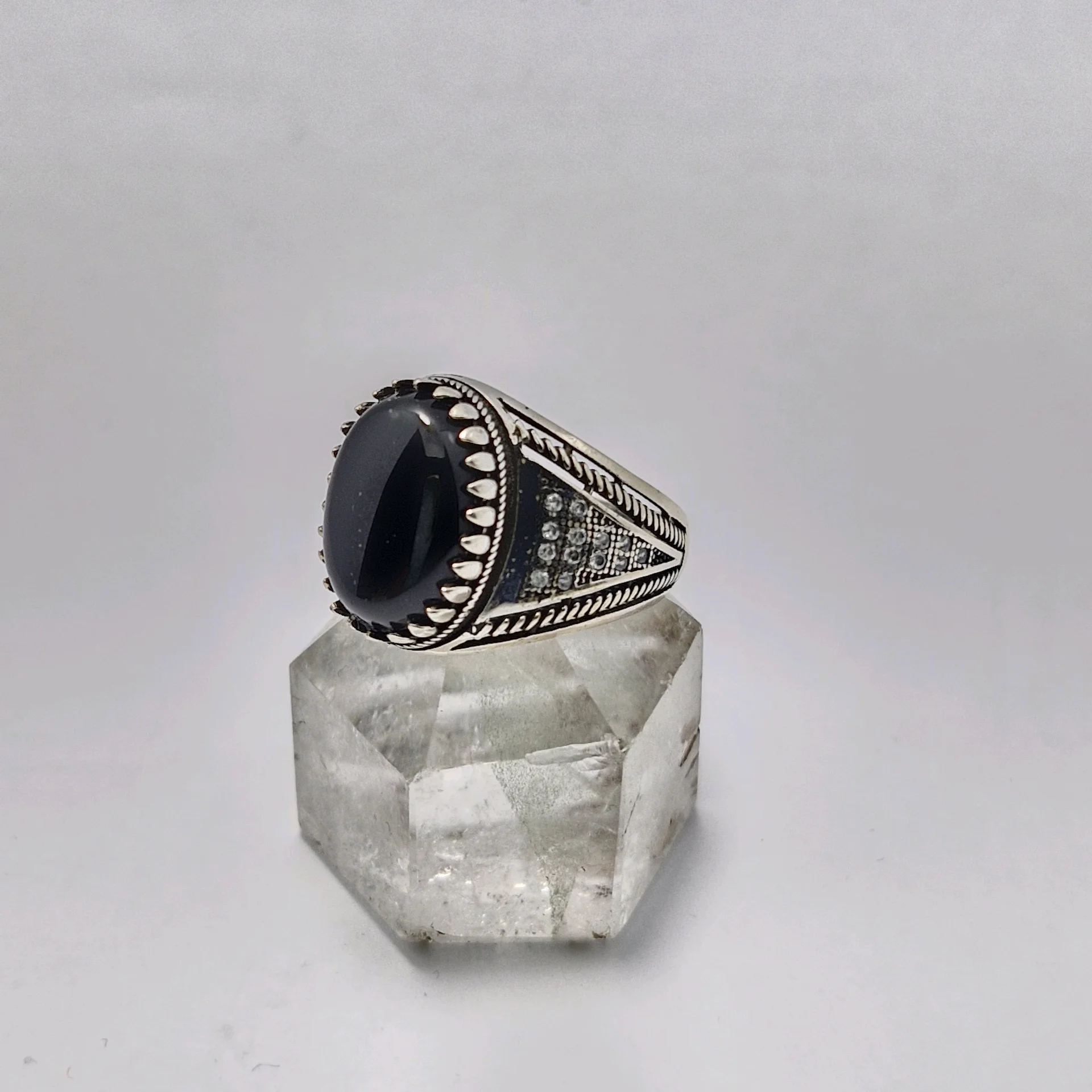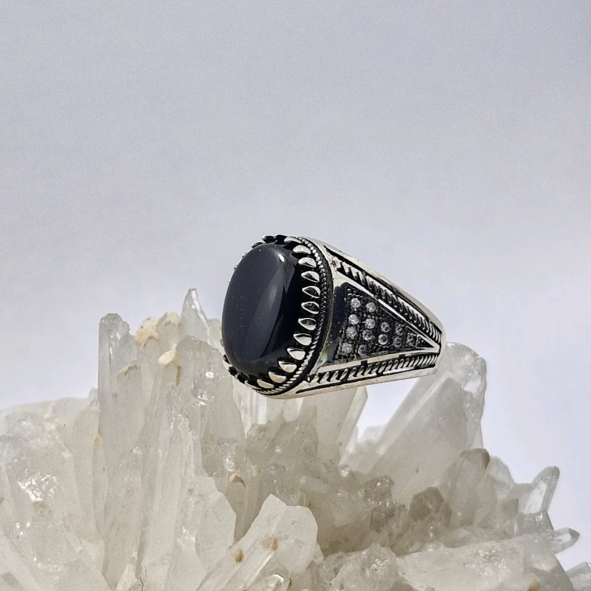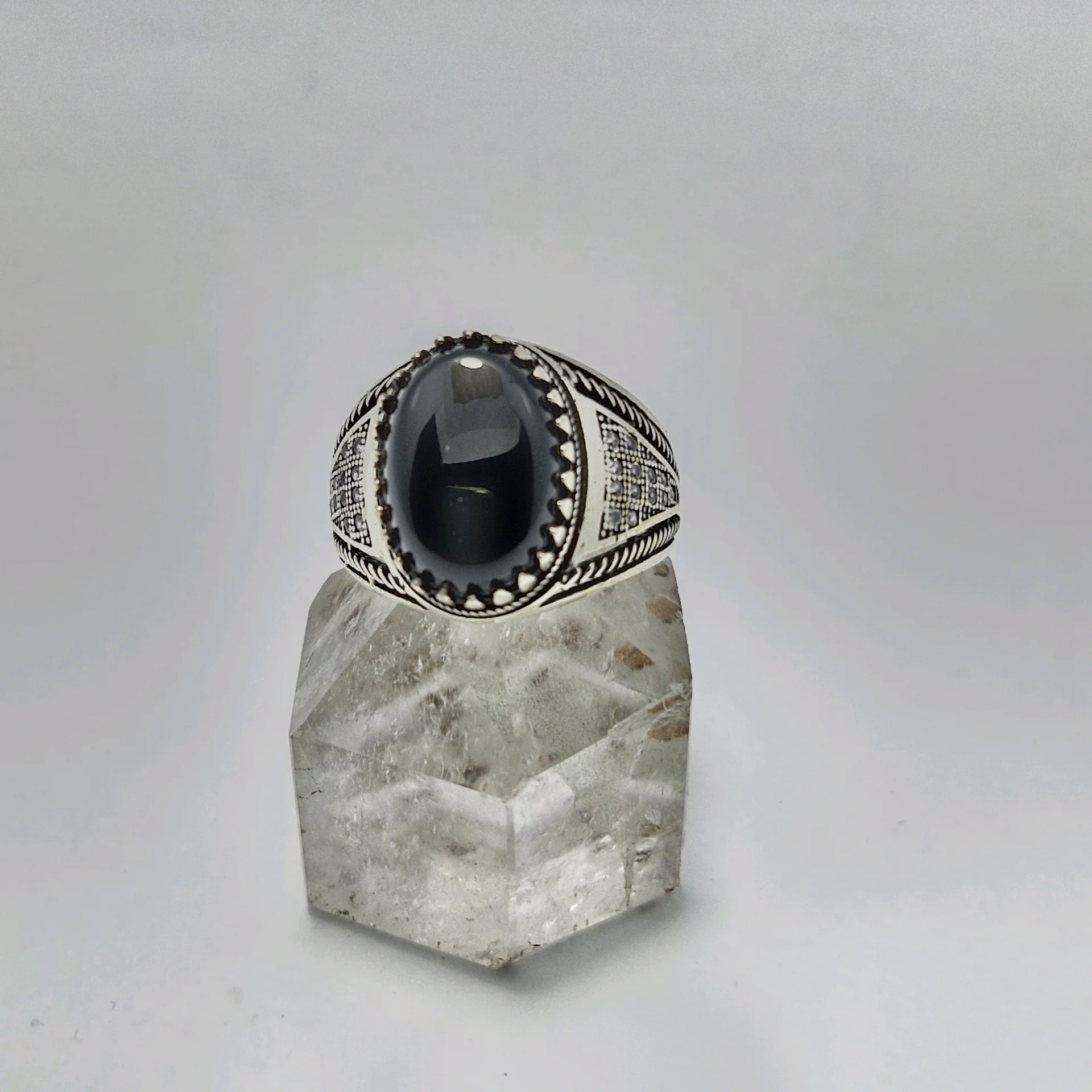انگشتر نقره آشنا سیاه قلم ، نگین سیاه اتمی مردانه و پسرانه کد Z212 سایز ۸ عیار ۹۲۵ ، وزن ۴.۳۷ گرم است. رکاب خوش دست و راحت مناسب استفاده روزمره می باشد.