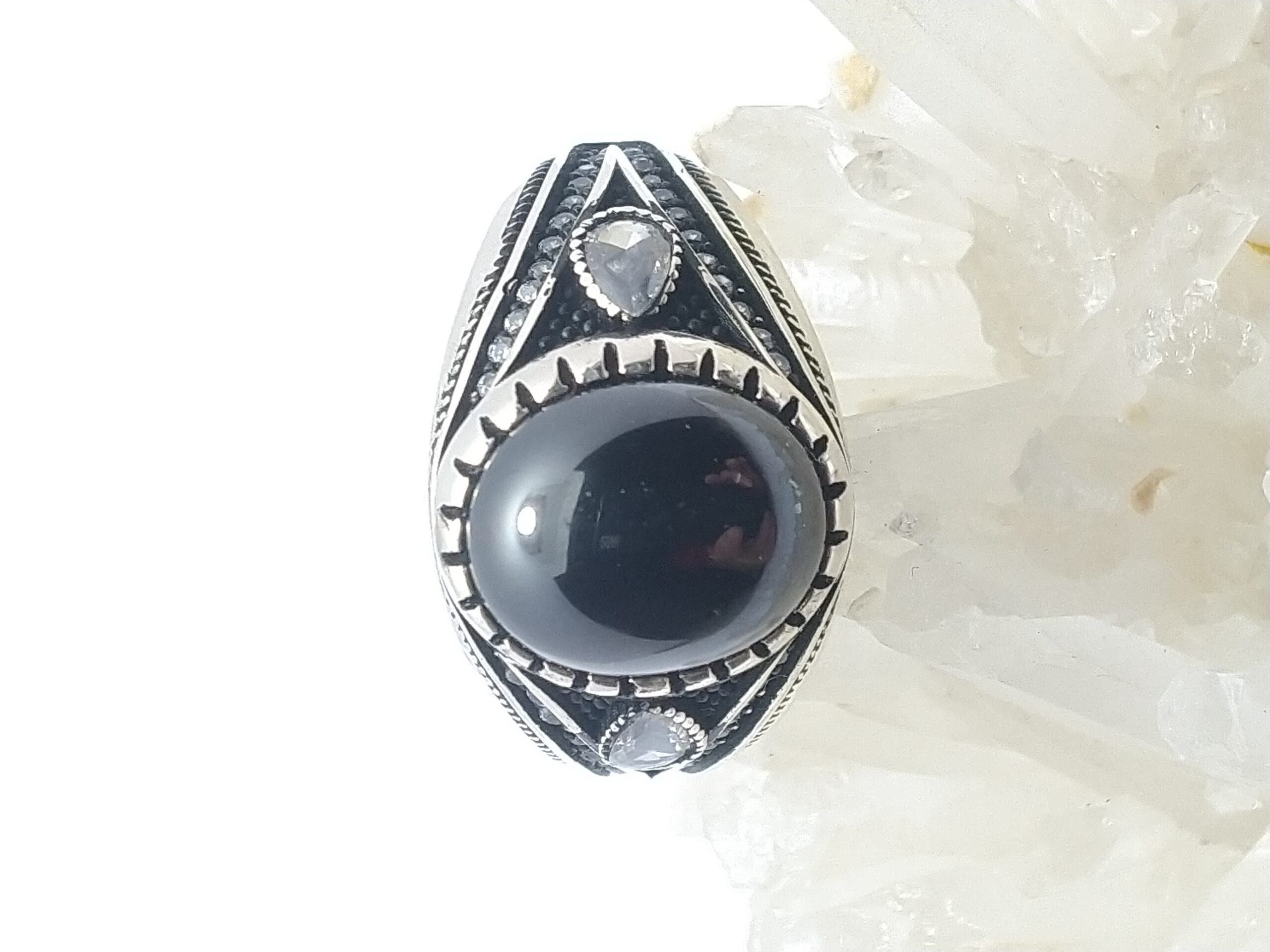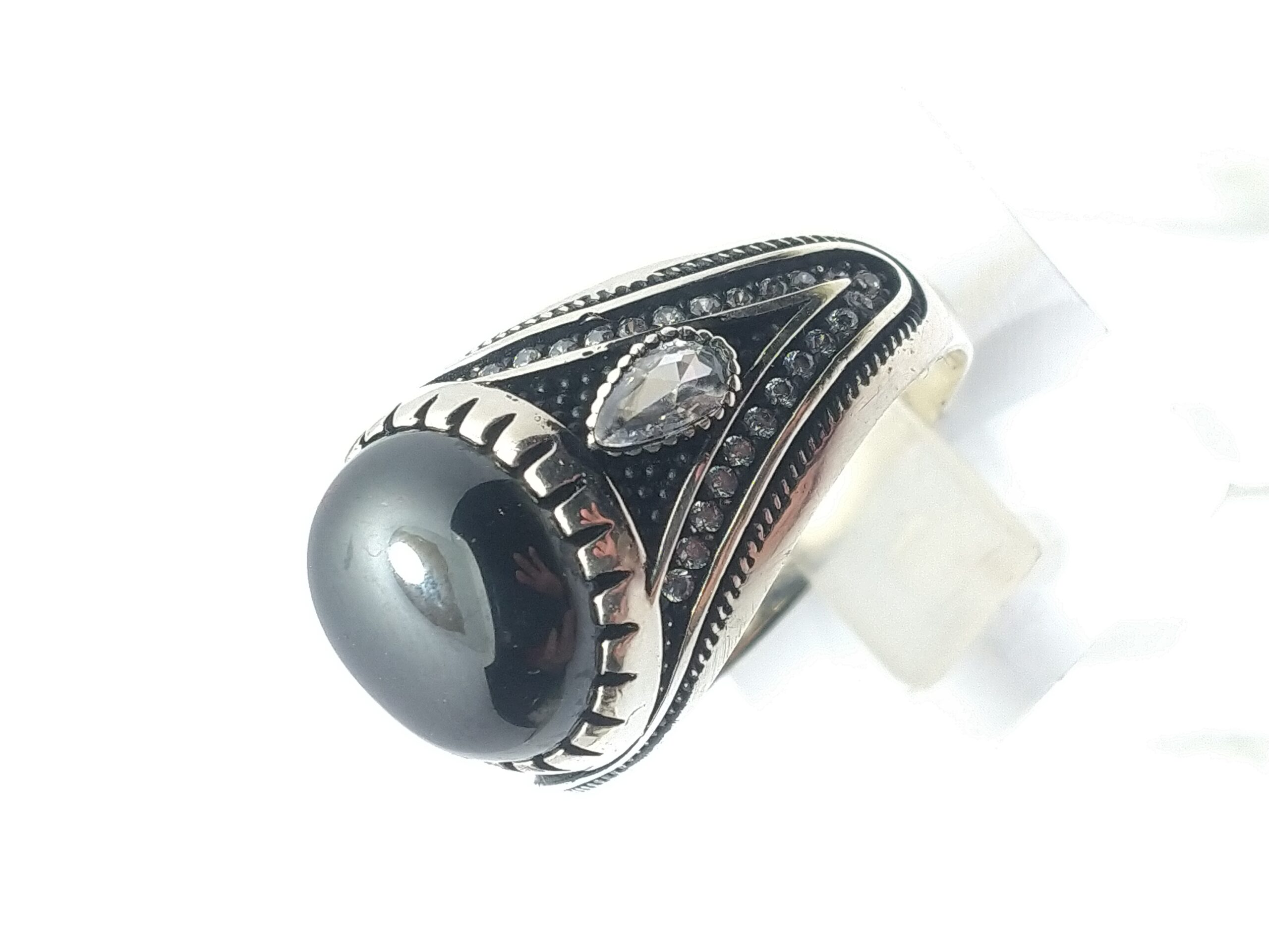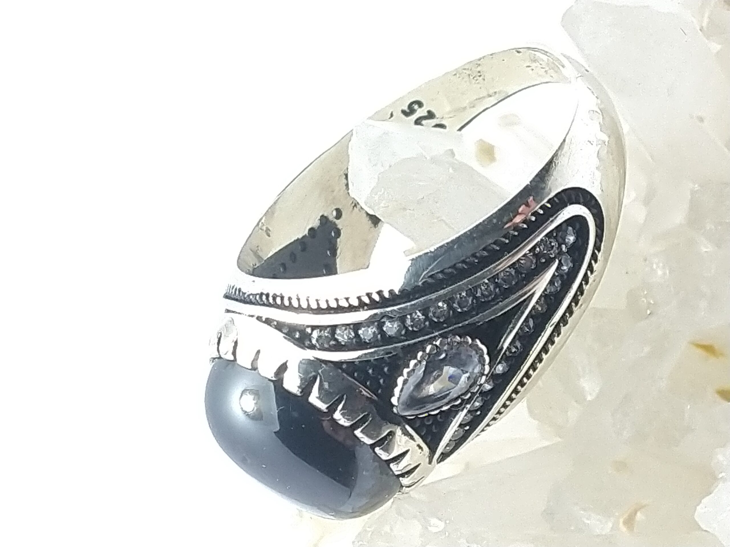 انگشتر نقره سیاه قلم ، نگین سیاه اتمی ، مردانه و پسرانه سایز ۹، عیار ۹۲۵ ، وزن ۷.۸۳ گرم است. رکاب خوش دست و راحت مناسب استفاده روزمره می باشد.