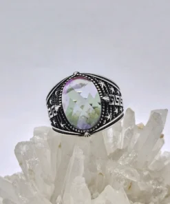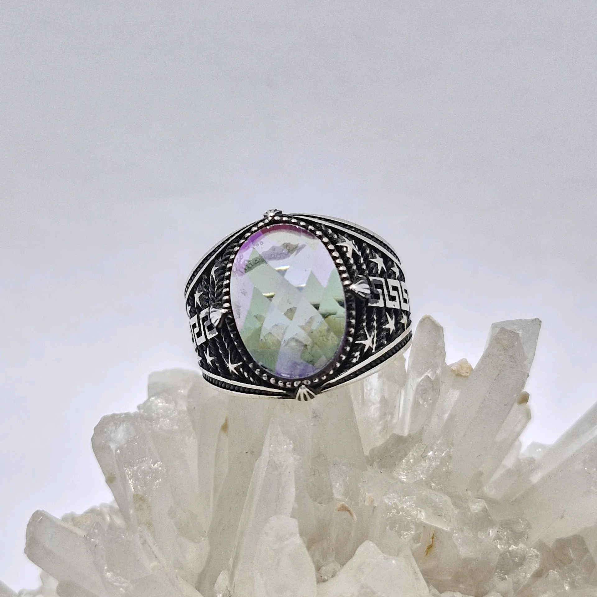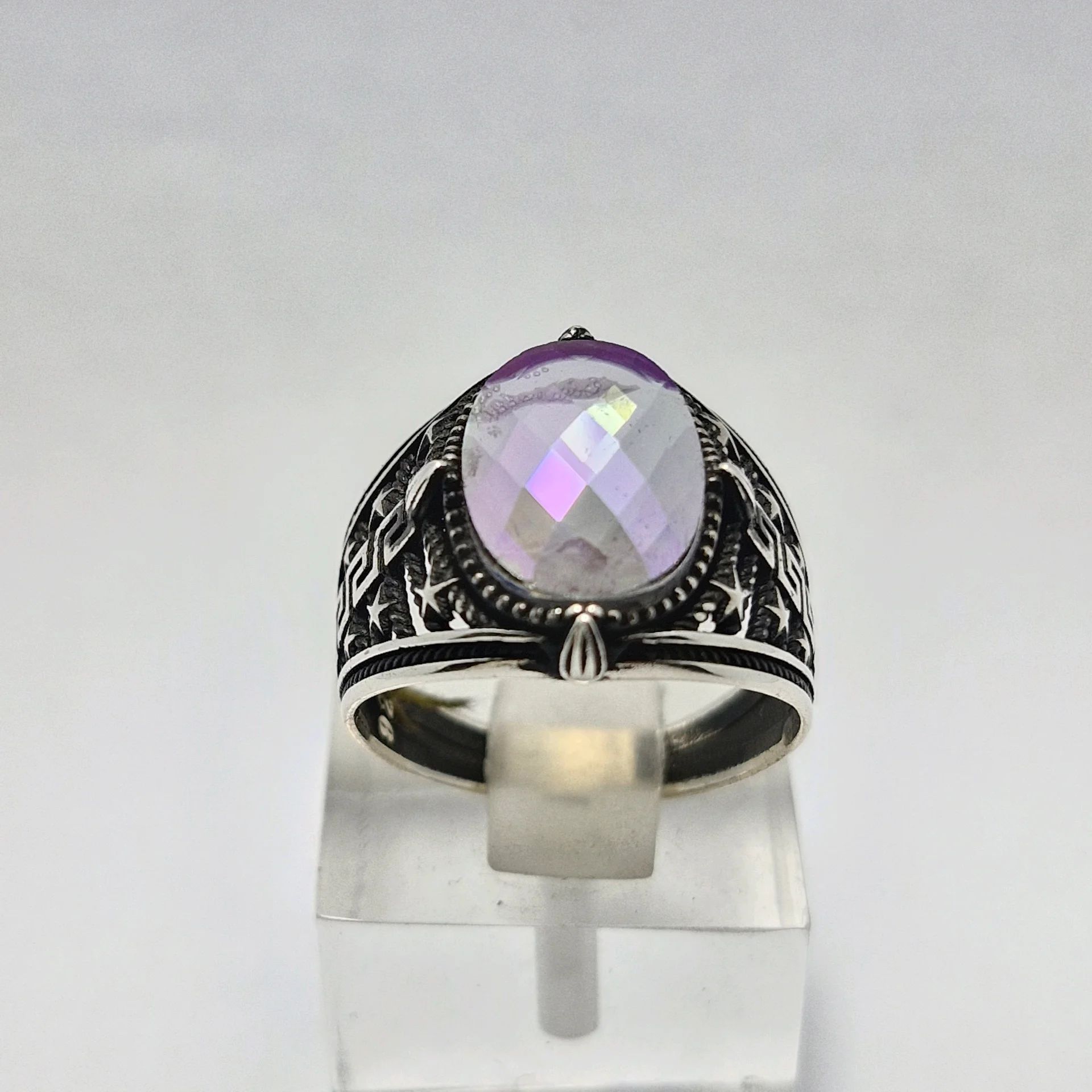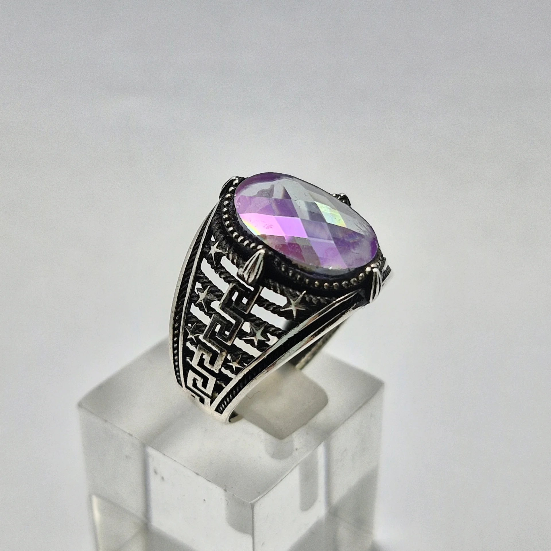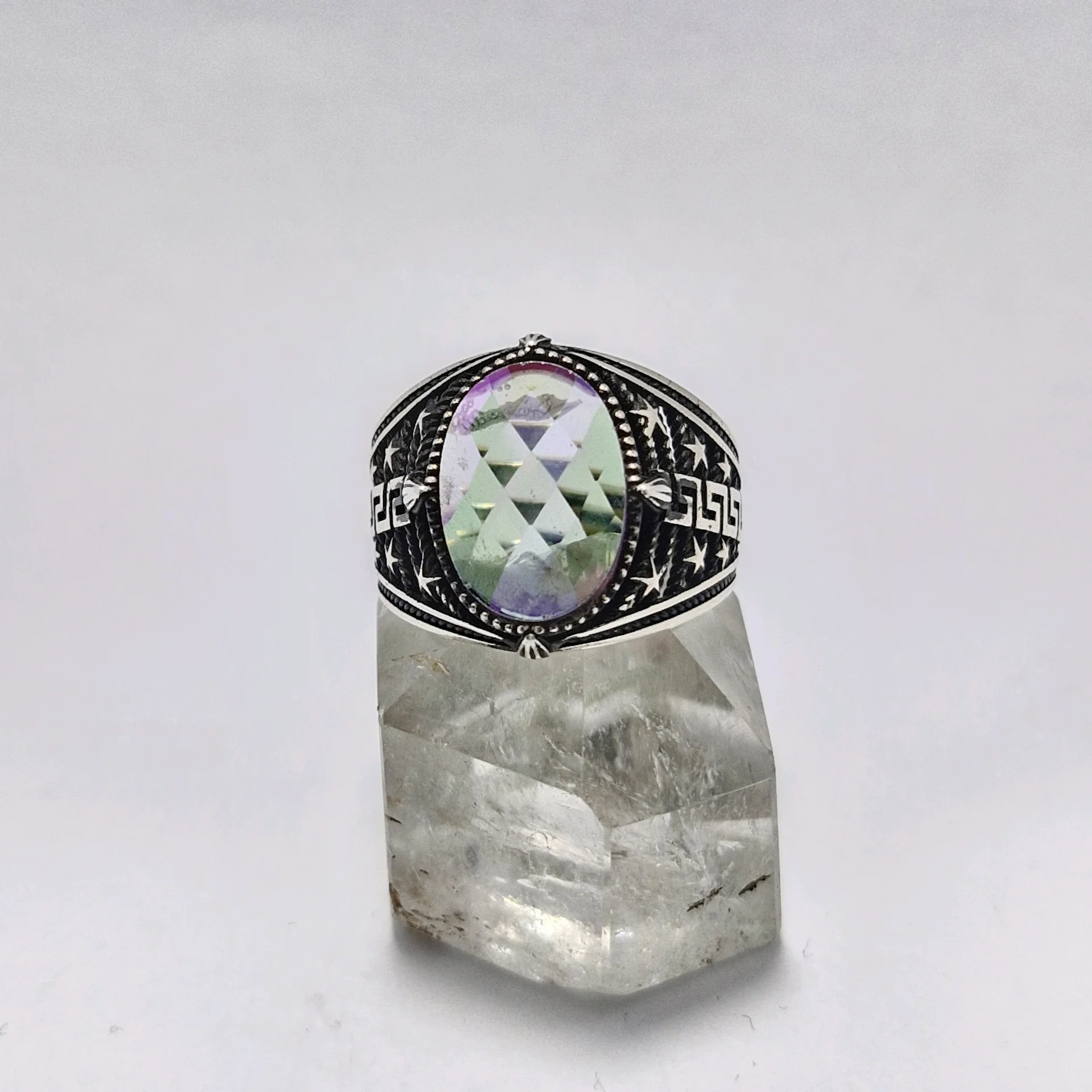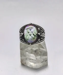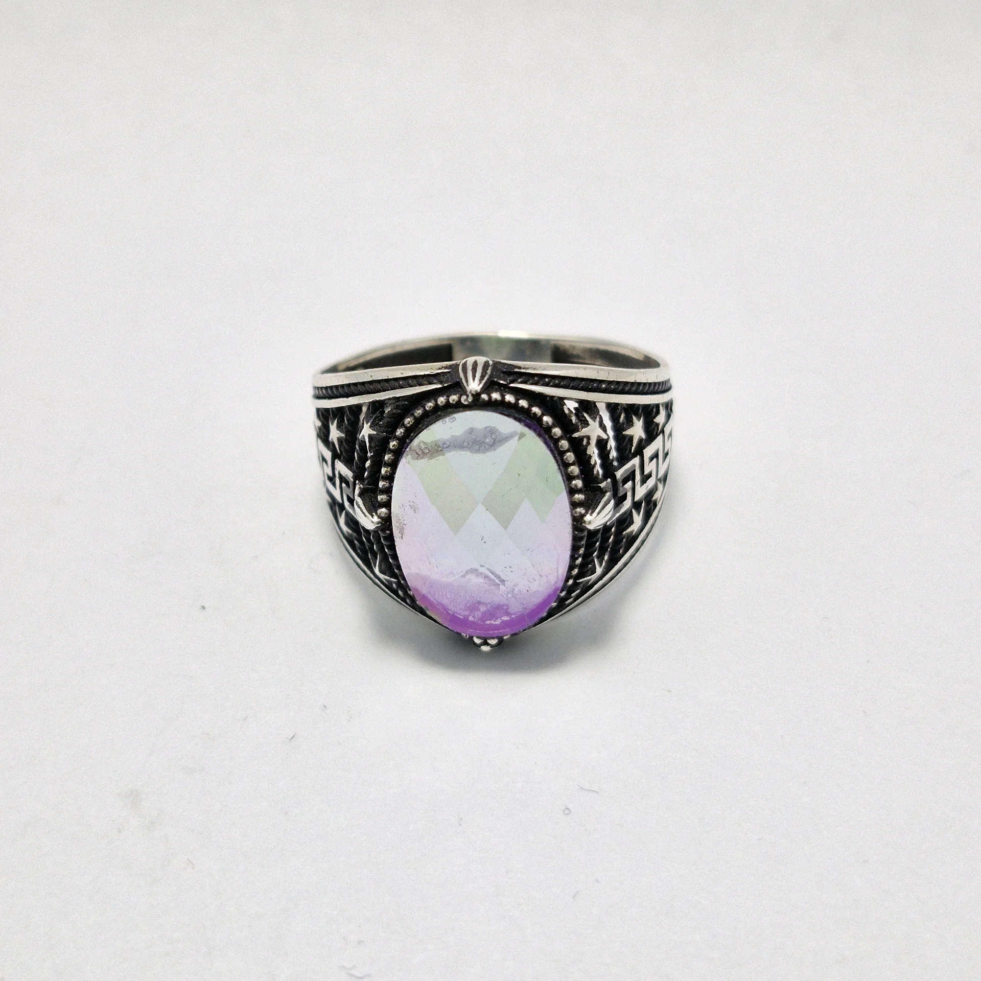 انگشتر نقره سیاه قلم ، نگین هفت رنگ اتمی مردانه و پسرانه کد Z207 سایز ۸ عیار ۹۲۵ ، وزن ۶.۴۵ گرم است. رکاب خوش دست و راحت مناسب استفاده روزمره می باشد.