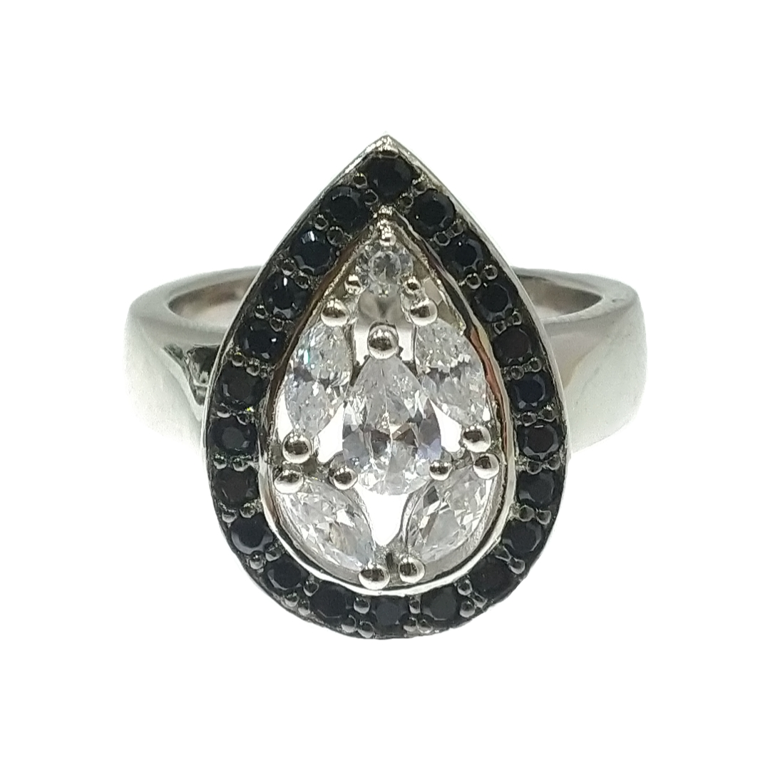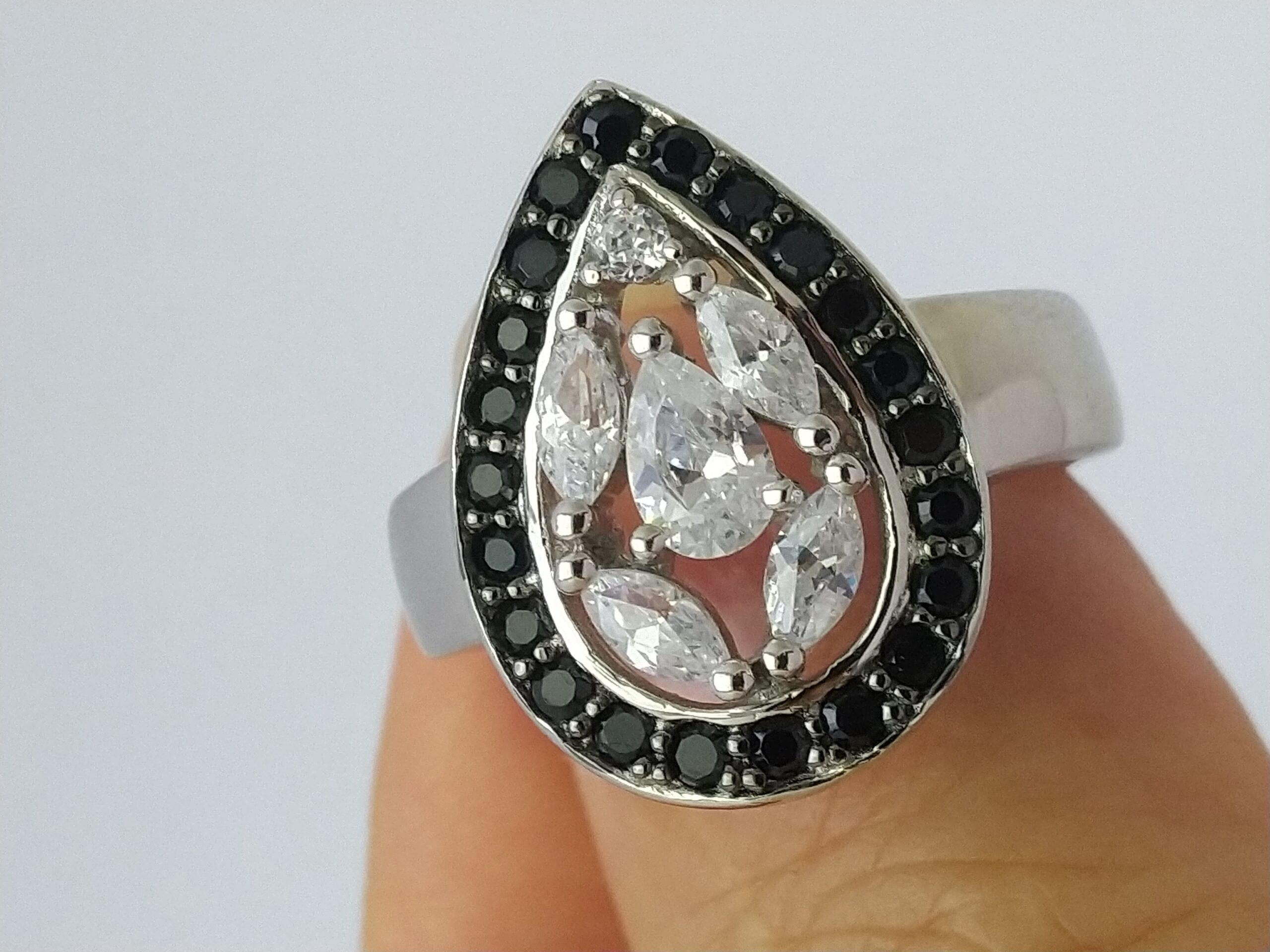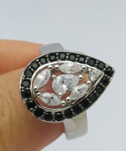 انگشتر نقره اشک با نگین اتمی عیار 925 وزن 8.5 گرم ، سایز 9 آبکاری رادیوم رنگ ثابت می باشد. انگشتر نقره اشک با نگین های کریستال مشکی و سنگ های اتمی طرح زیبا و چشمگیر و مجلسی می باشد.