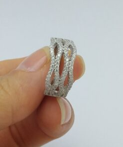 انگشتر نقره توری با نگین اتمی عیار 925 آبکاری رادیوم و رنگ ثابت سایز 6 وزن 5.6 گرم می باشد. انگشتر نقره طرح توری با نگین های اتمی درخشان طرح جواهر زیورشیک مناسب انگشتر مجلسی و حلقه می باشد.