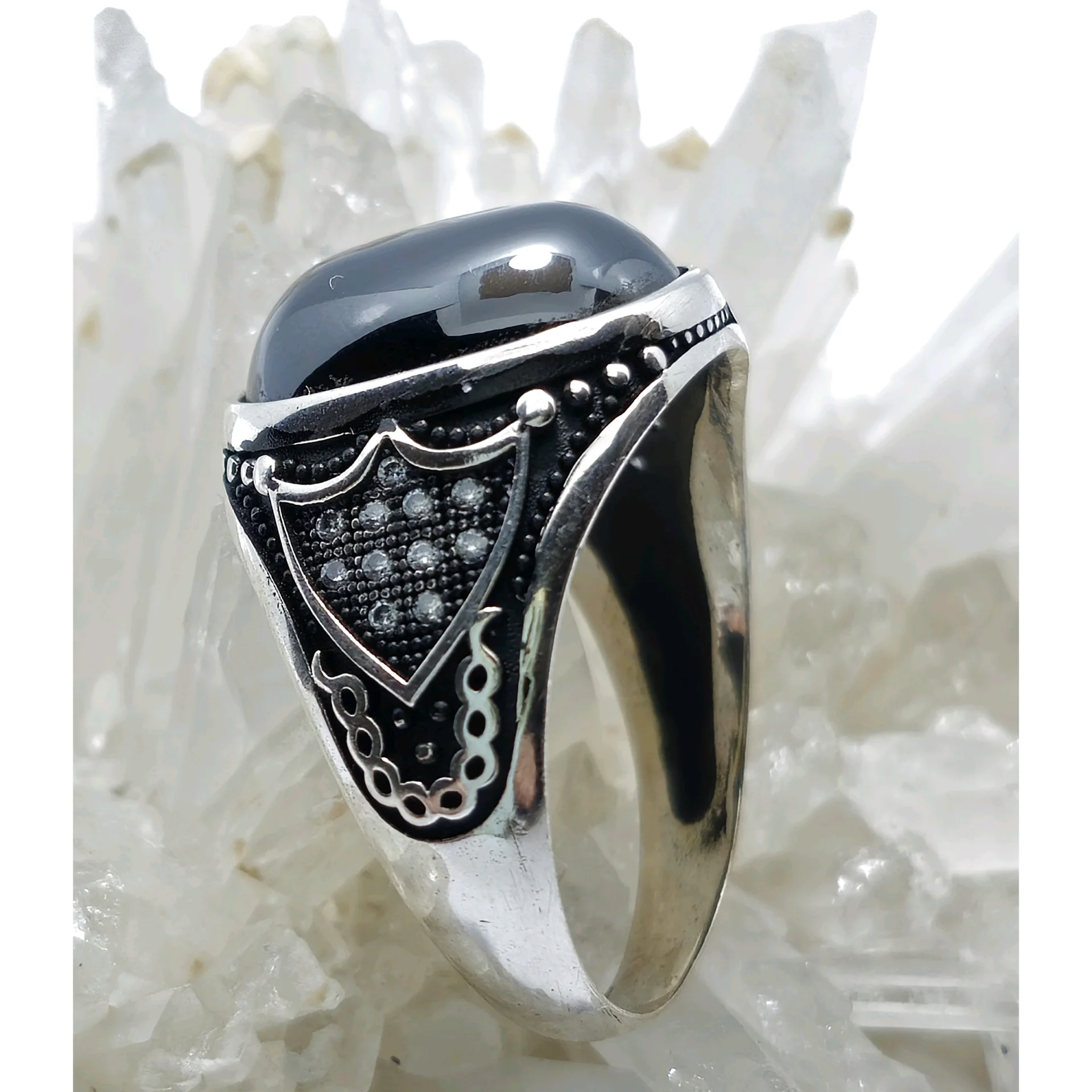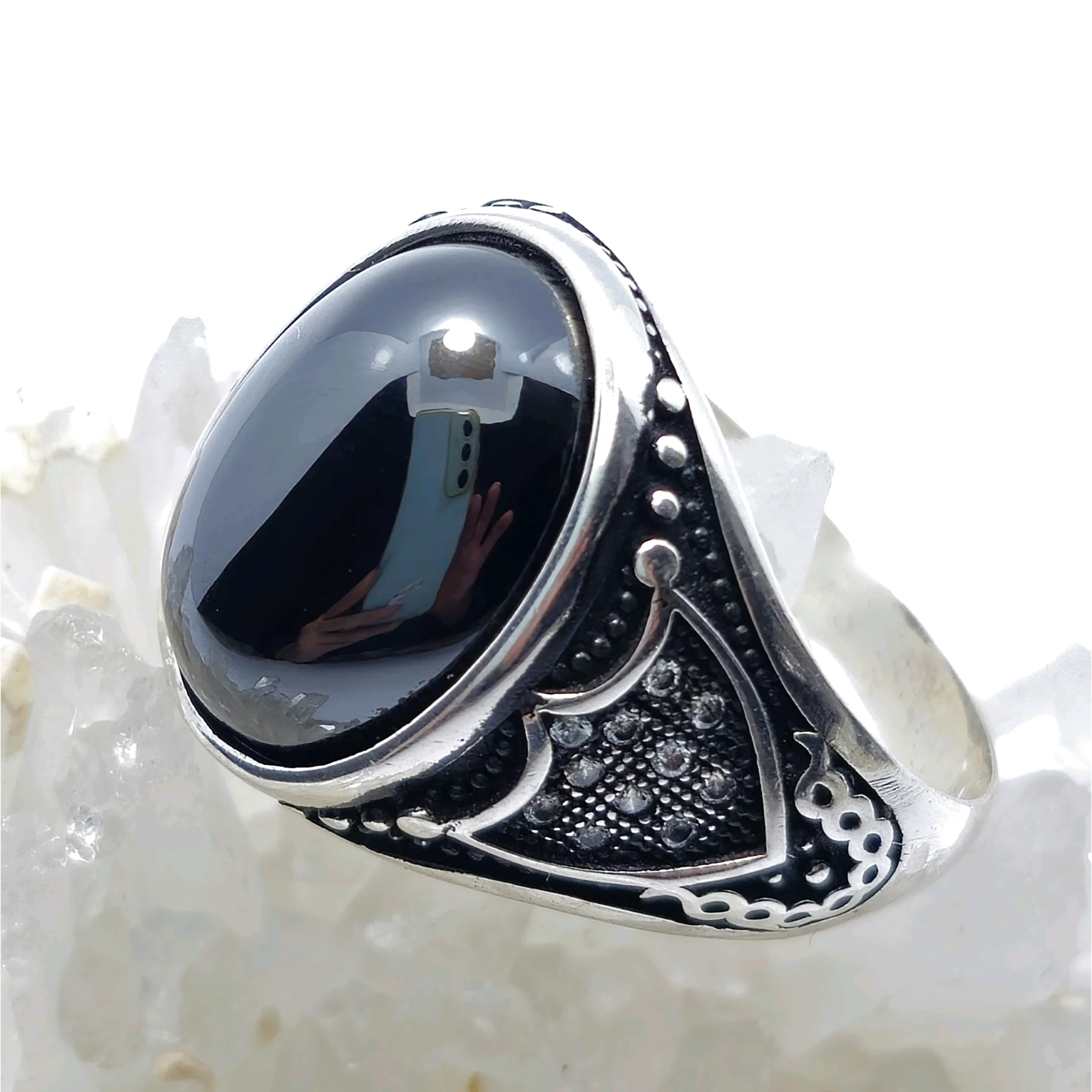 انگشتر نقره سیاه قلم ، نگین سیاه اتمی مردانه و پسرانه کد Z191 سایز ۹، عیار ۹۲۵ ، وزن ۸.۵ گرم است. رکاب خوش دست و راحت مناسب استفاده روزمره می باشد.