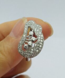 انگشتر نقره طاووس با نگین اتمی عیار 925 آبکاری رادیوم و رنگ ثابت سایز 8 وزن 4.5 گرم می باشد.طرح شرقی و پر نگین
