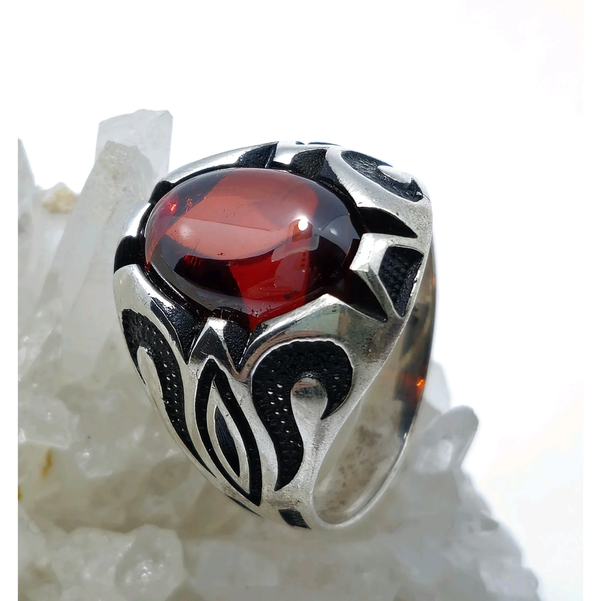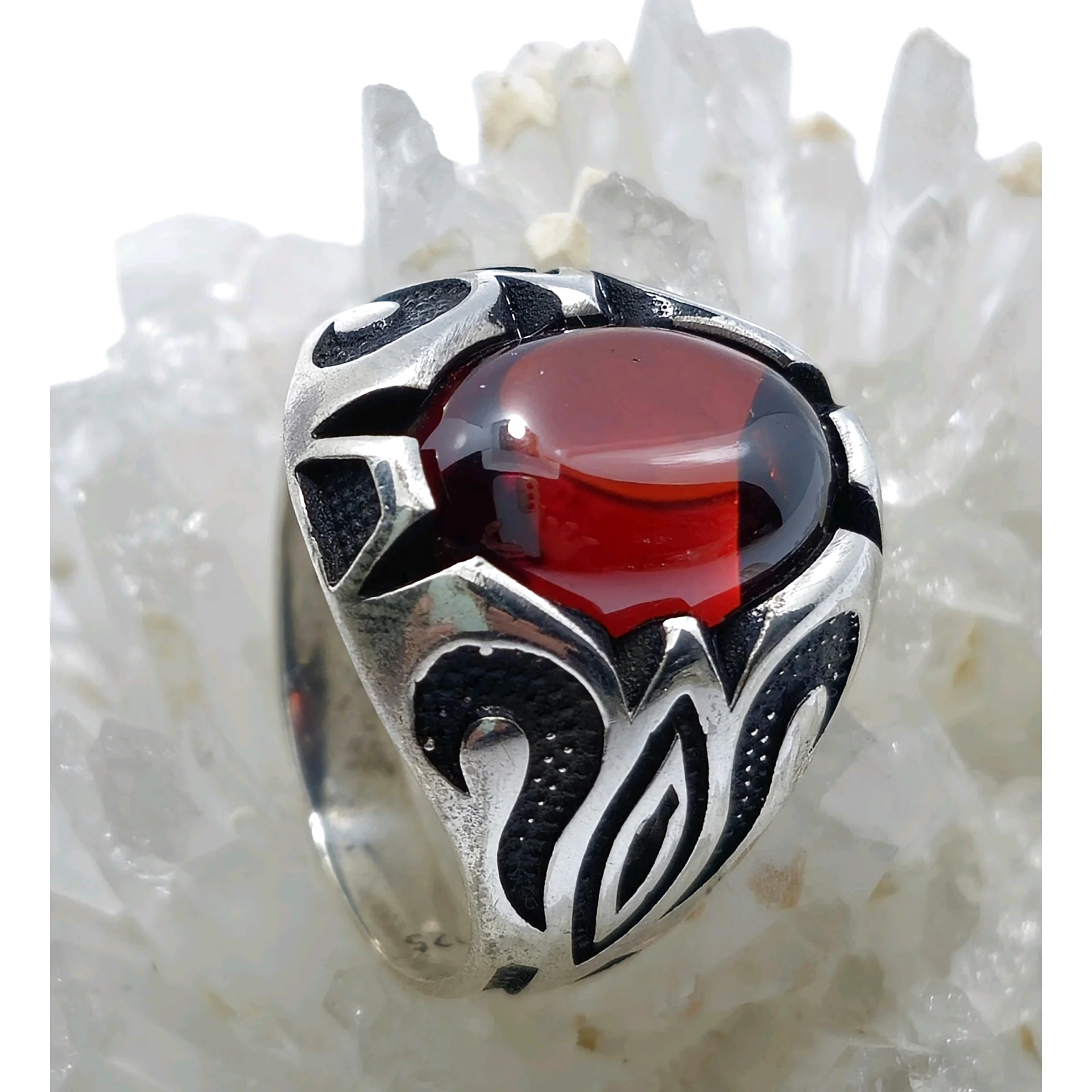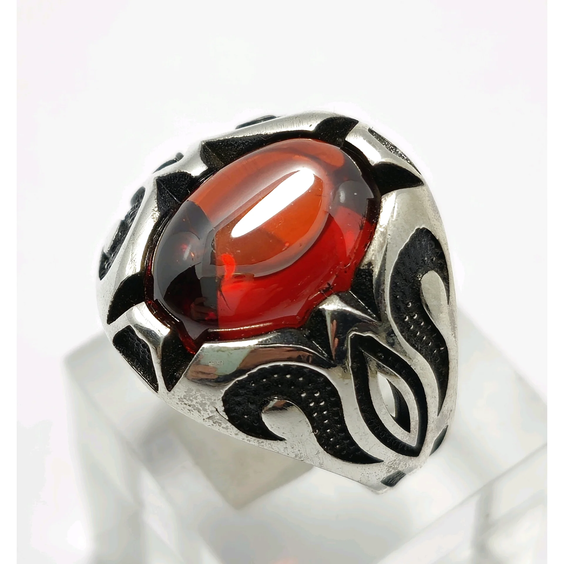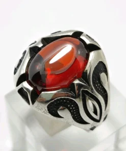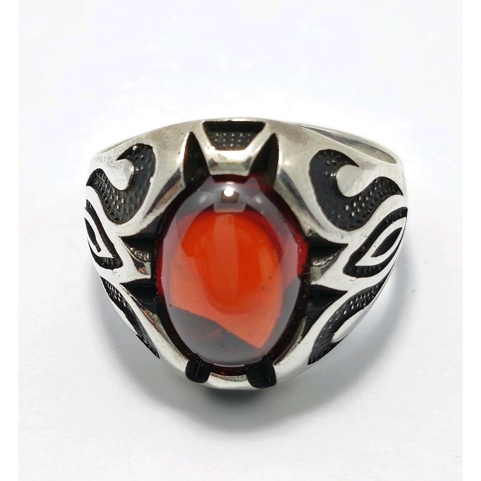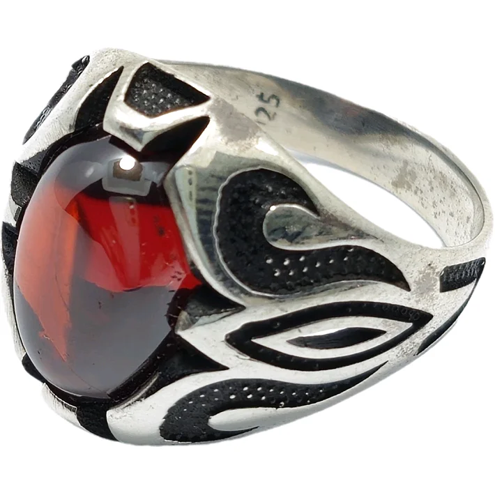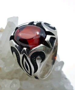 انگشتر نقره سیاه قلم ، نگین قرمز اتمی مردانه و پسرانه کد Z192 سایز ۹، عیار ۹۲۵ ، وزن ۸.۴۰ گرم است. رکاب خوش دست و راحت مناسب استفاده روزمره می باشد.