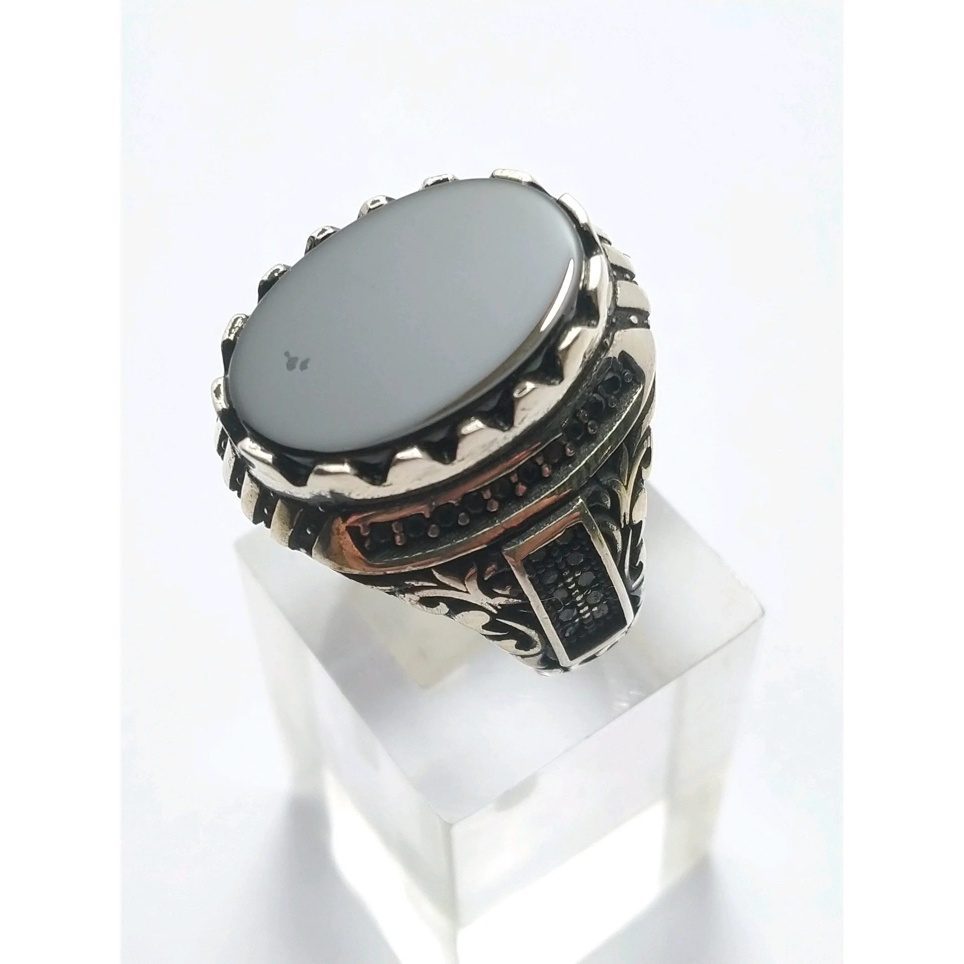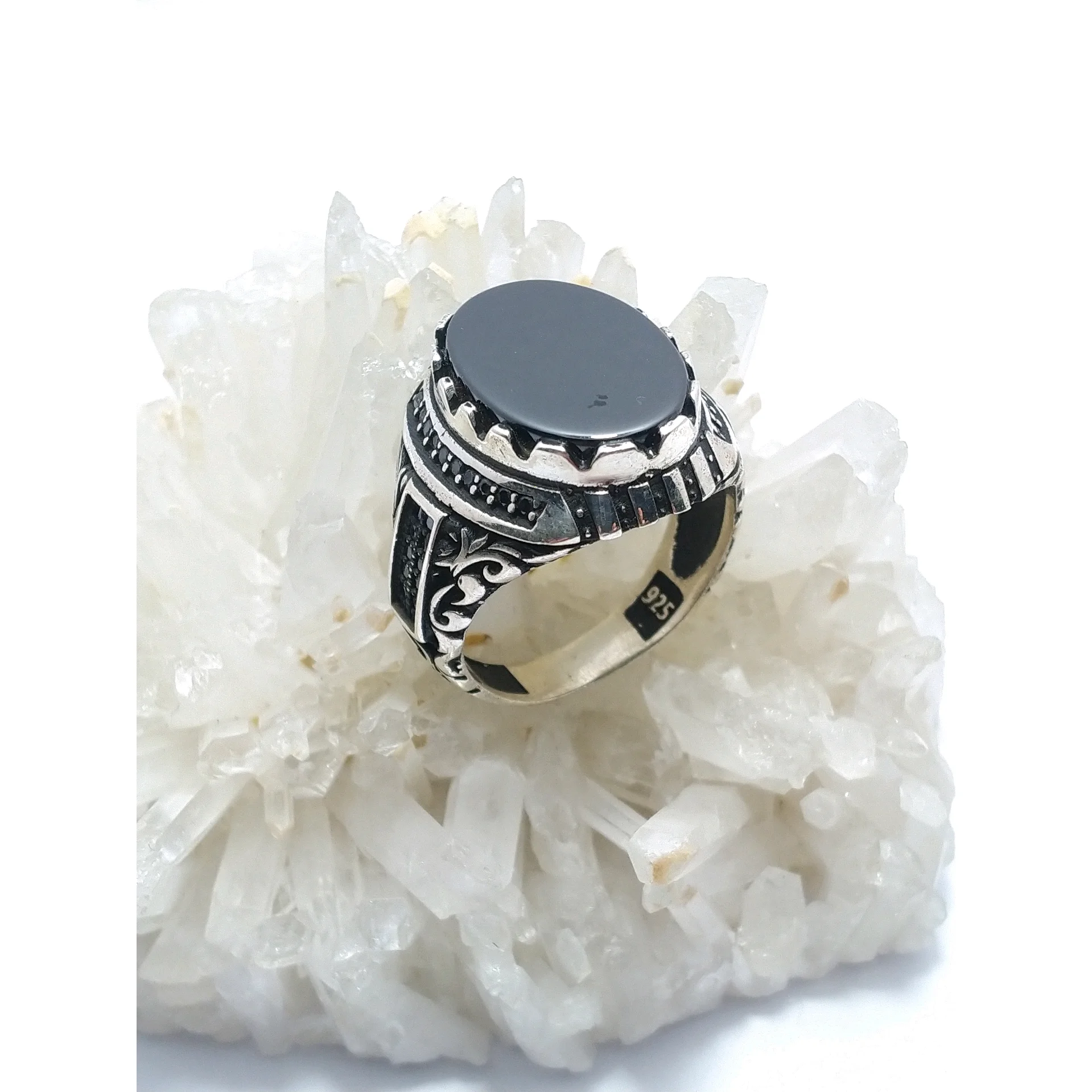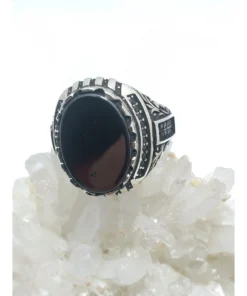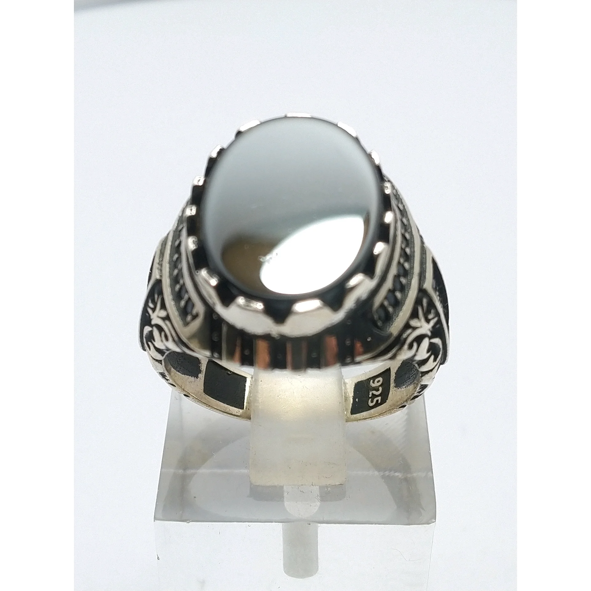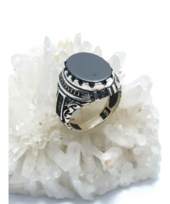 انگشتر نقره مردانه سیاه قلم نگین حدید