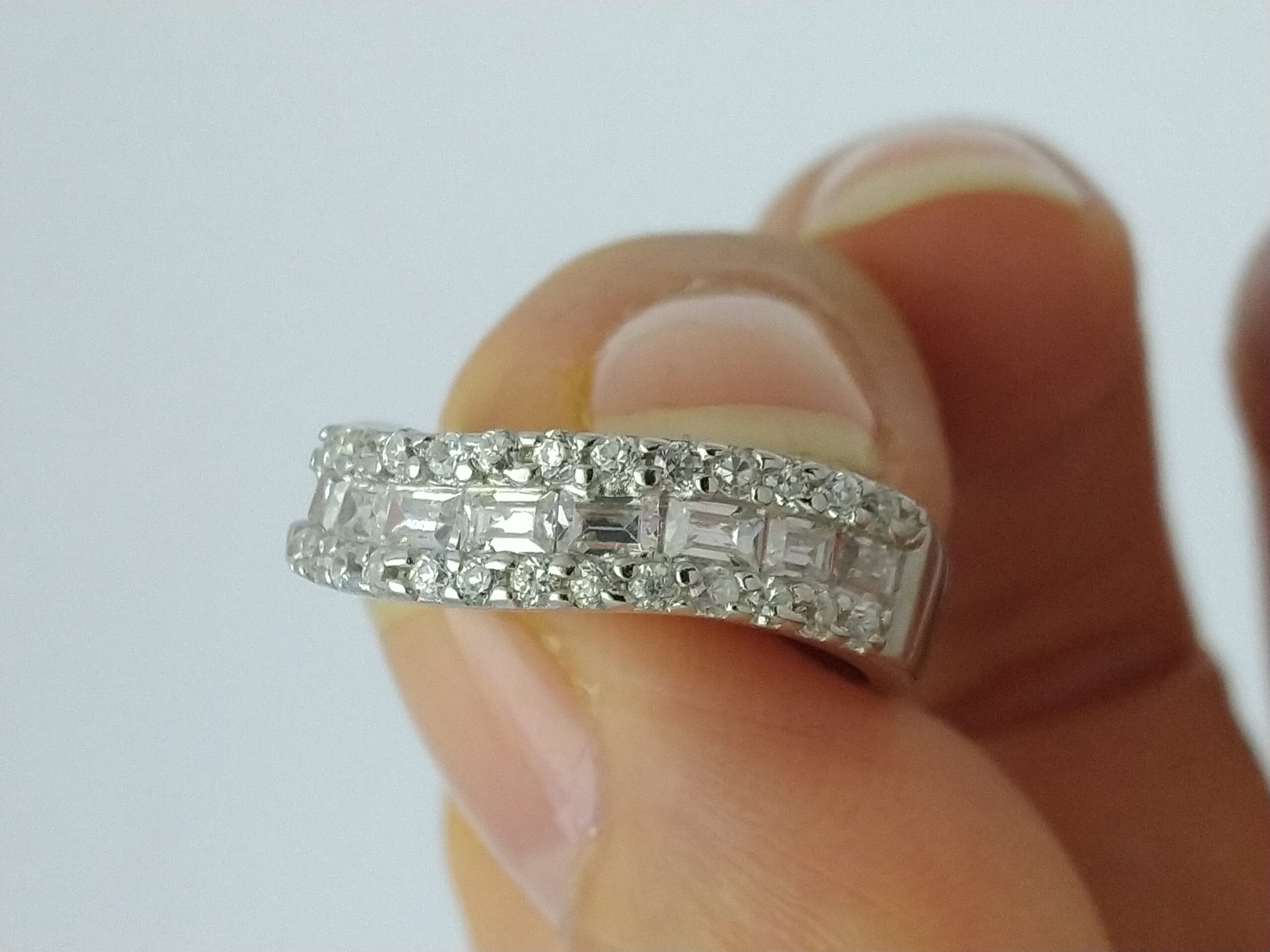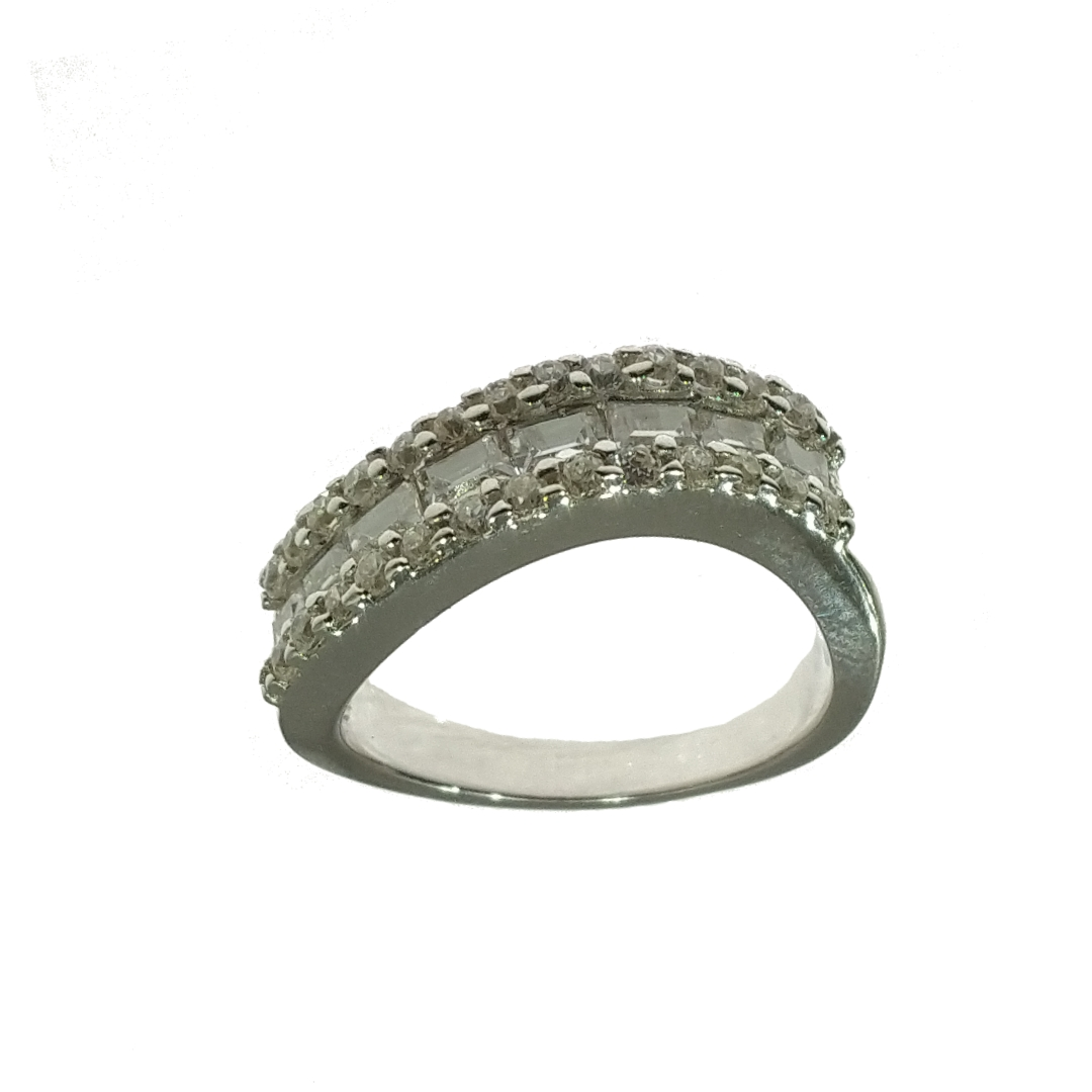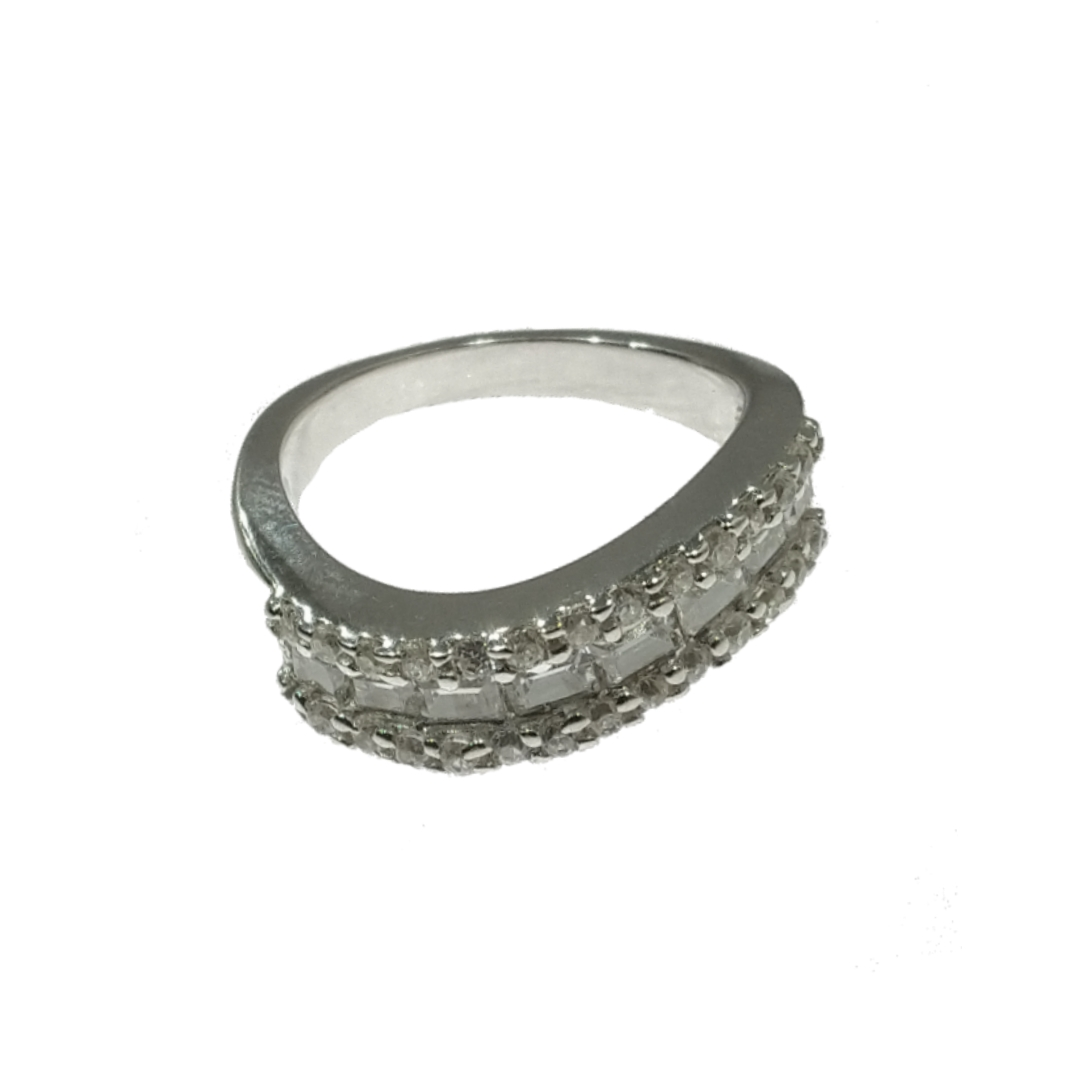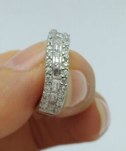 انگشتر نقره نازی با نگین اتمی عیار 925 آبکاری رادیوم و رنگ ثابت نگین های درخشان برلیان و باگت اتمی مناسب استفاده روزمره و حلقه می باشد