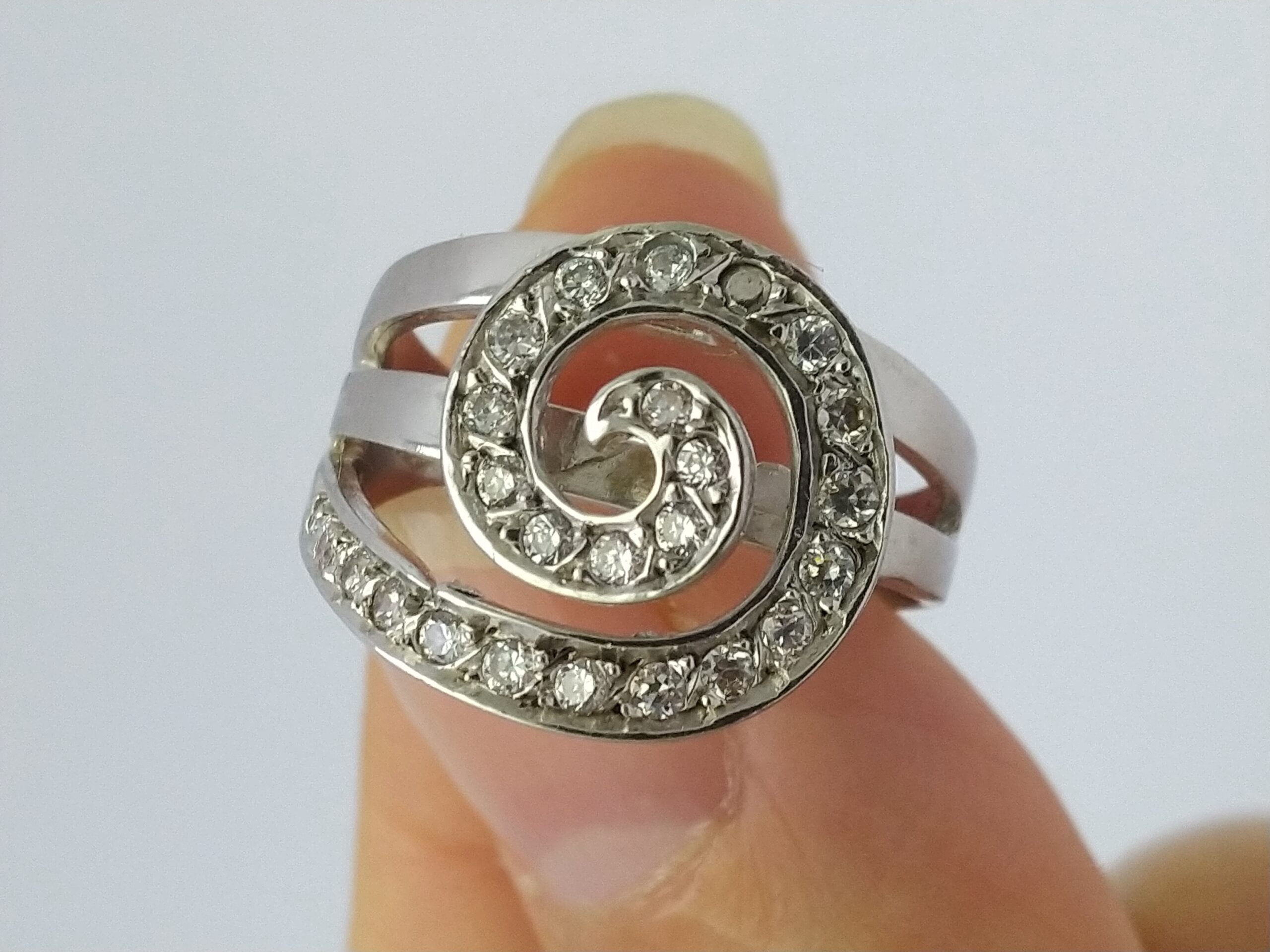 انگشتر نقره مدل پیچک با نگین اتمی عیار 925 آبکاری رادیوم و رنگ ثابت سایز 9 ، وزن 4.96 گرم ، انگشتر نقره پیچک گزینه مناسبی برای خانمهایی که دنبال طرح ساده و راحت و شیک می باشند.