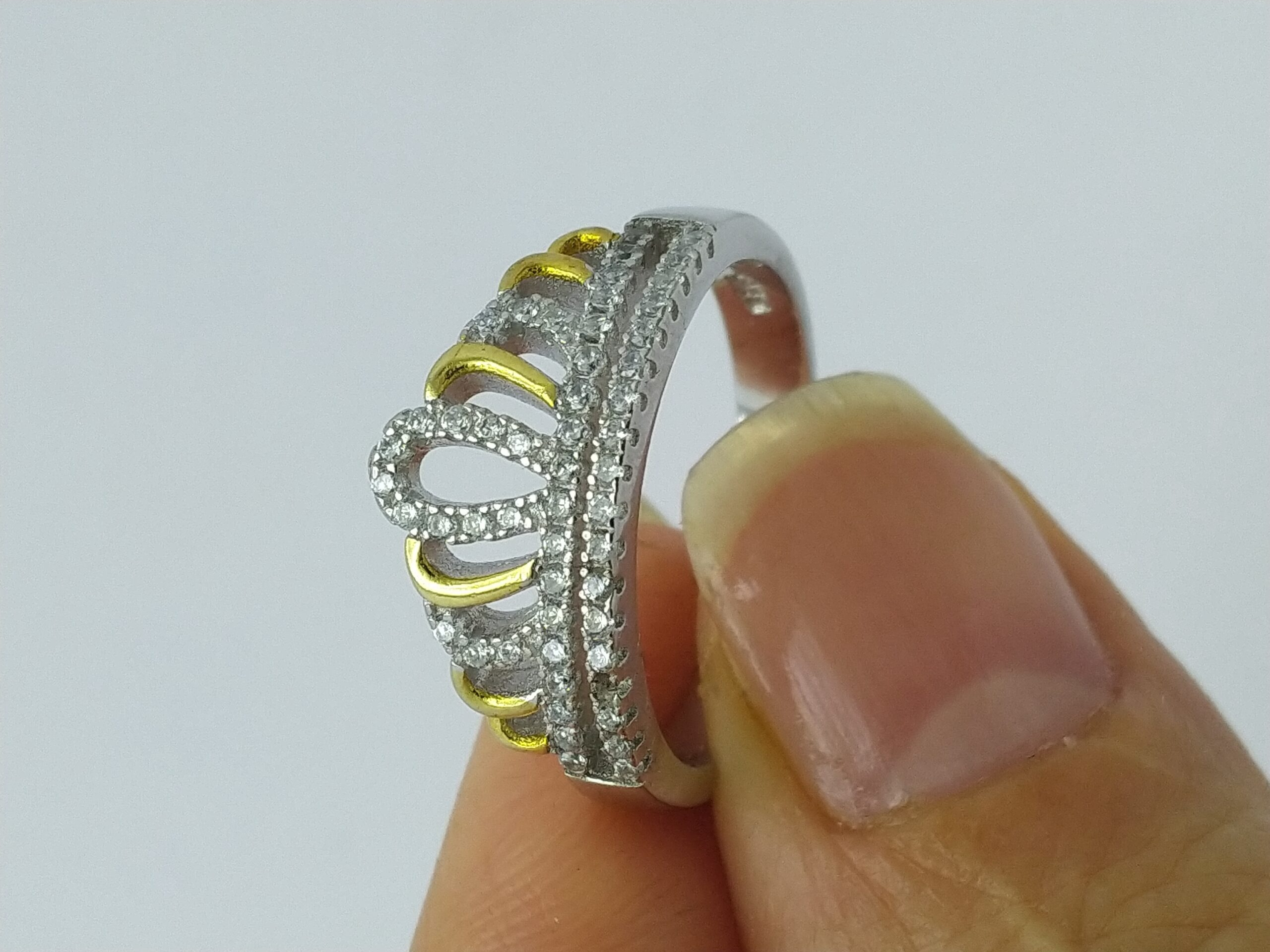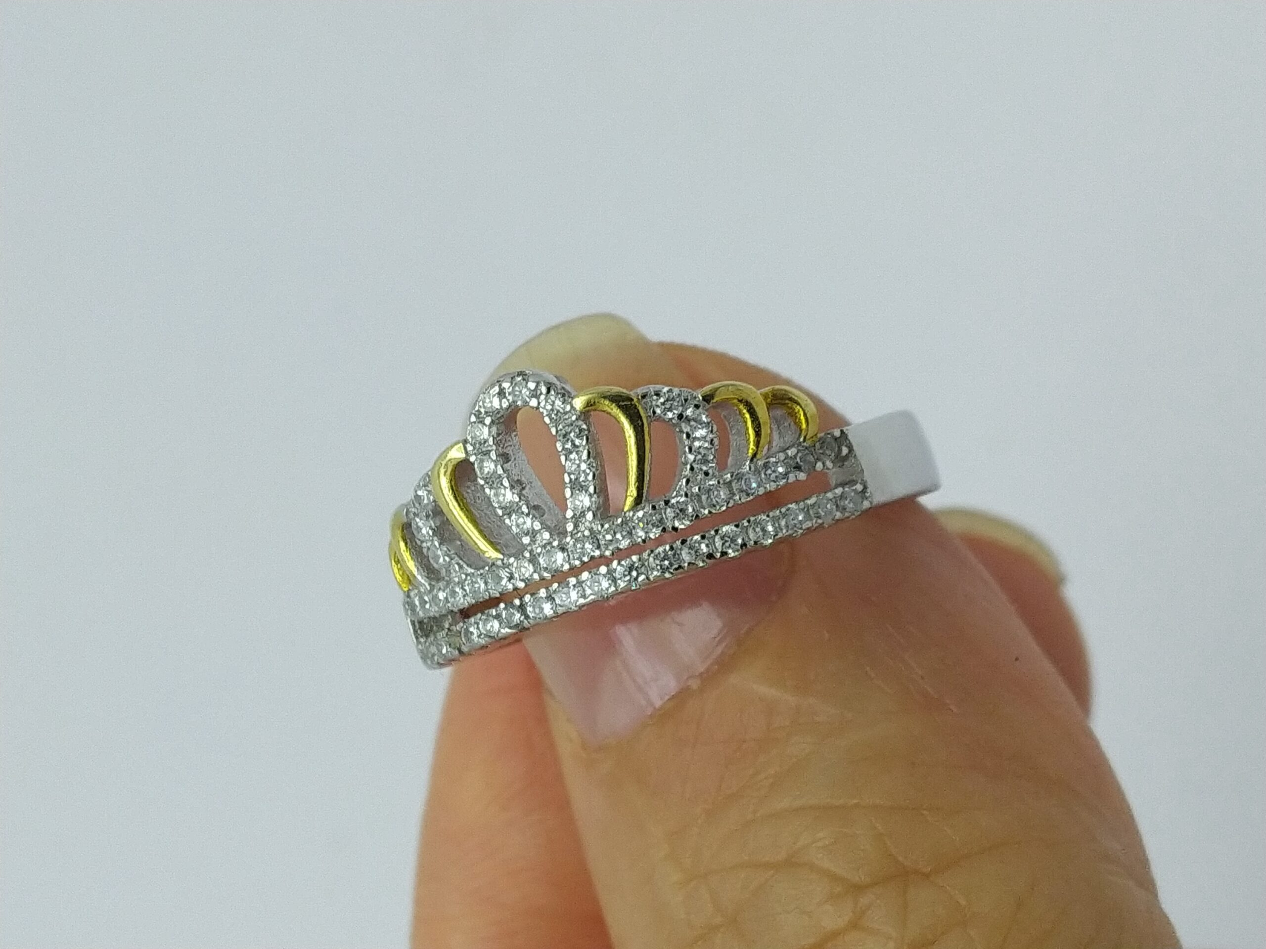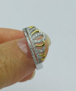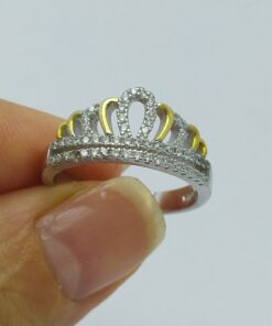 انگشتر نقره کویین نگین اتمی عیار 925 آبکاری رادیوم و طلا ، وزن 3.53 گرم مناسب انگشت سایز 8 می باشد. انگشتر کویین طرح تاج ، زیبا و سبک مناسب خانمها و دختران می باشد.
