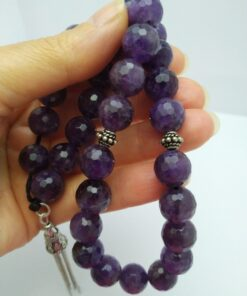 تسبیح سنگ آمتیست مهره ای تمام تراش با رنگ طبیعی اصل و معدنی دارای خواص درمانی مناسب هدیه و ماه تولد می باشد