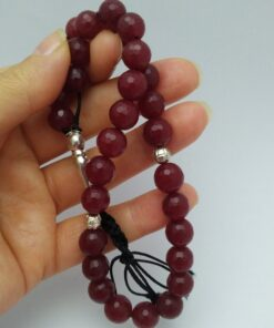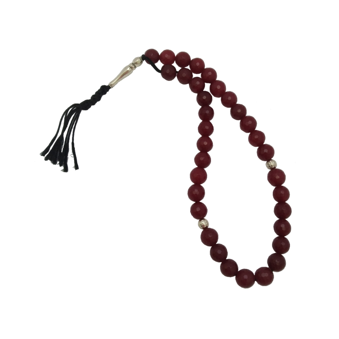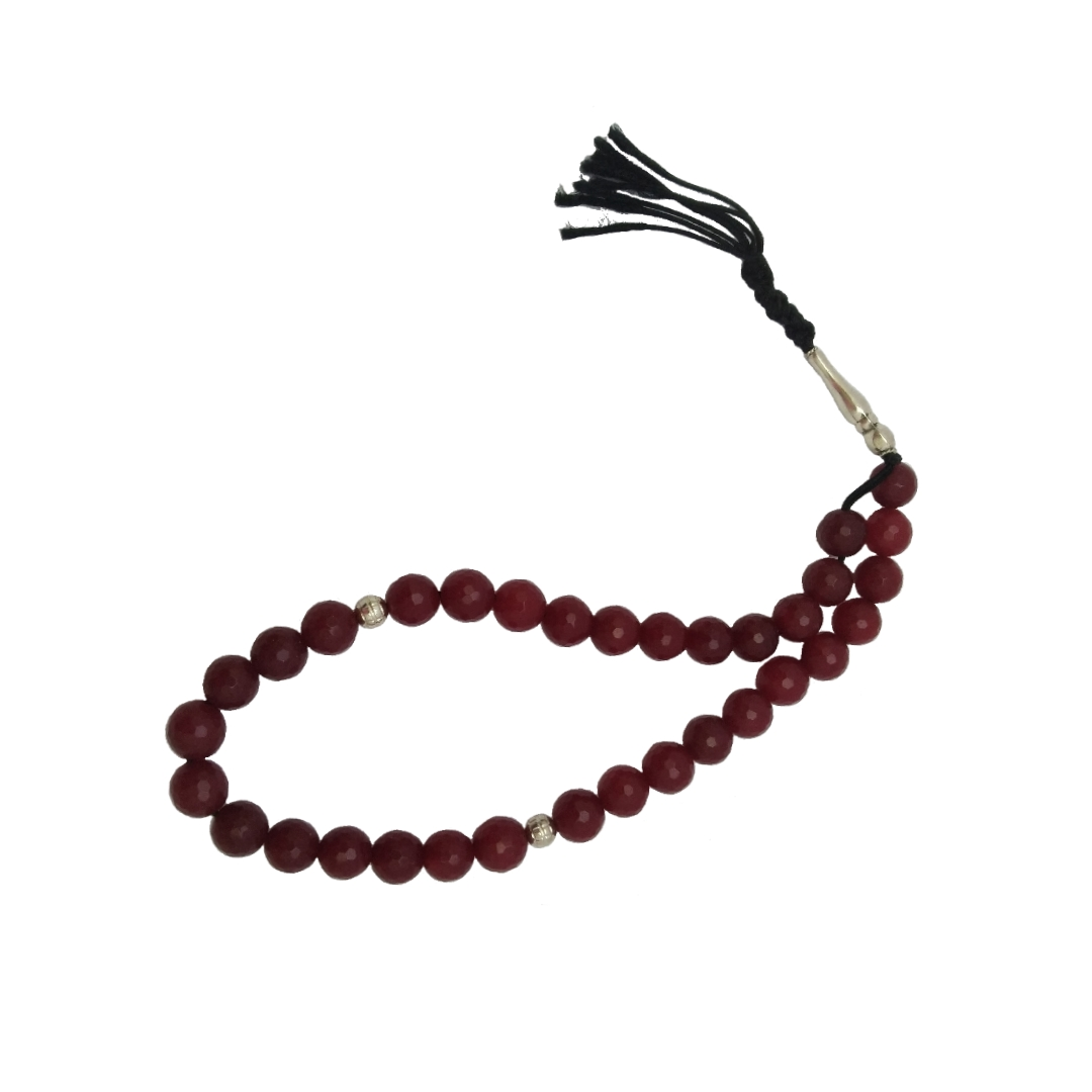 تسبیح سنگ عقیق قرمز تمام تراش دارای 33 عدد مهره کار شده با 2 گرم نقره دست ساز عیار 925 می باشد.