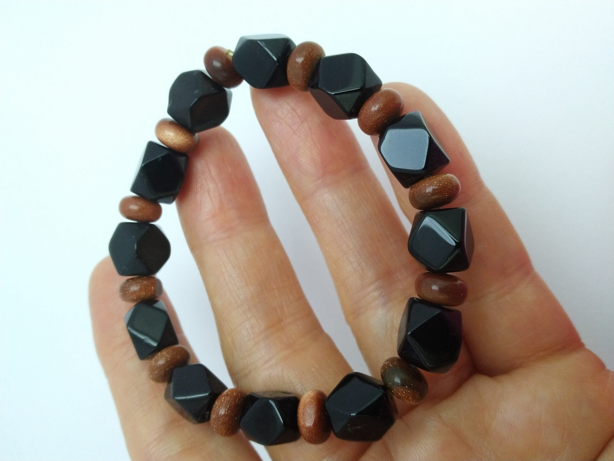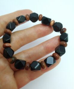 دستبند سنگ اونیکس تراش چند ضلعی و سنگ دلربا واشری مدل کشی فری سایز دور مچ تا ۱۸ سانت ، سنگ اصل و طبیعی و معدنی و خواص سنگ درمانی است و مناسب خانمها و آقایان می باشد.