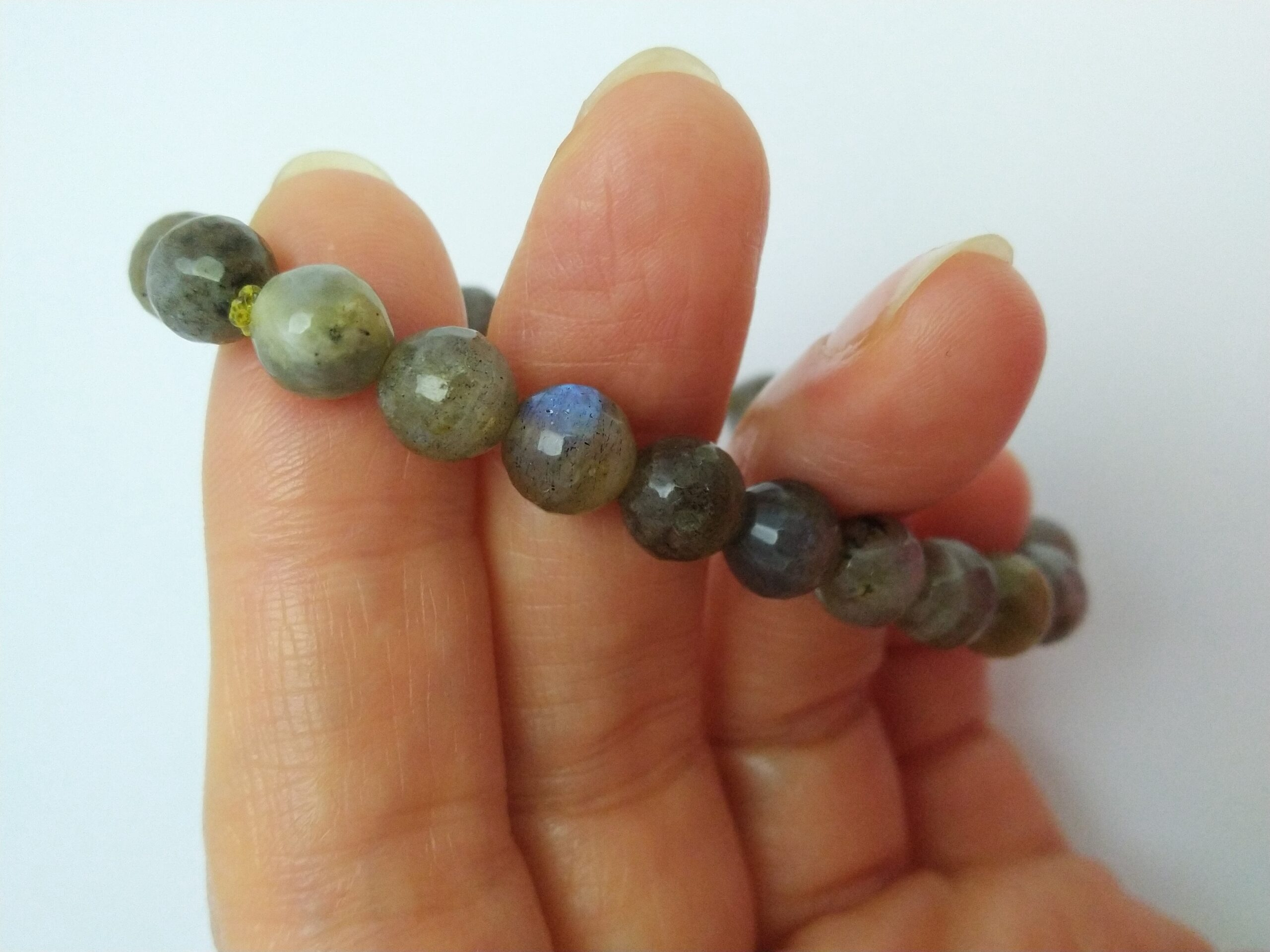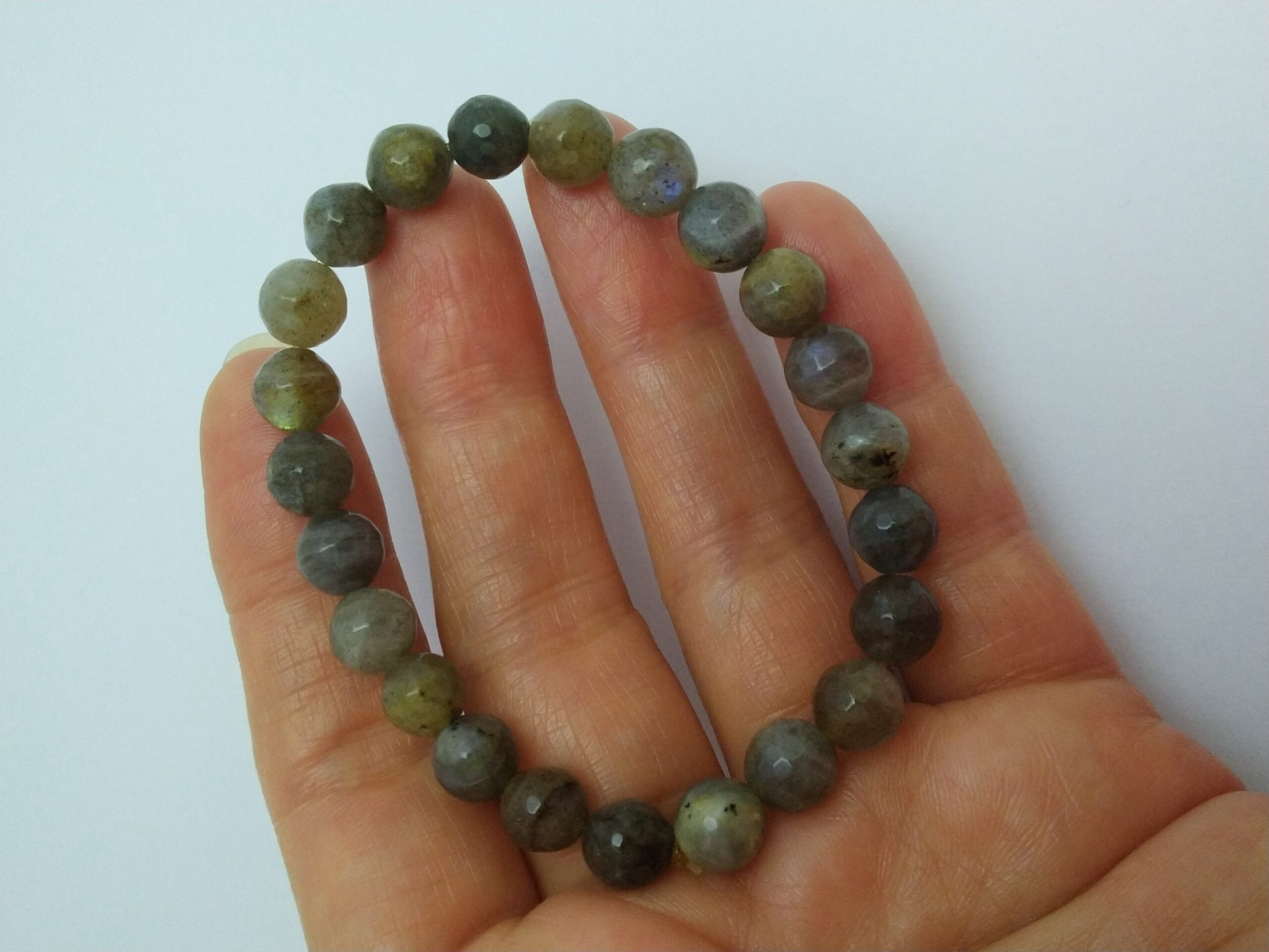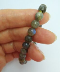 دستبند سنگ لابرادوریت خاکستری مهره ای تمام تراش مدل کشی و فری سایز مناسب خانمها و آقایان می باشد.