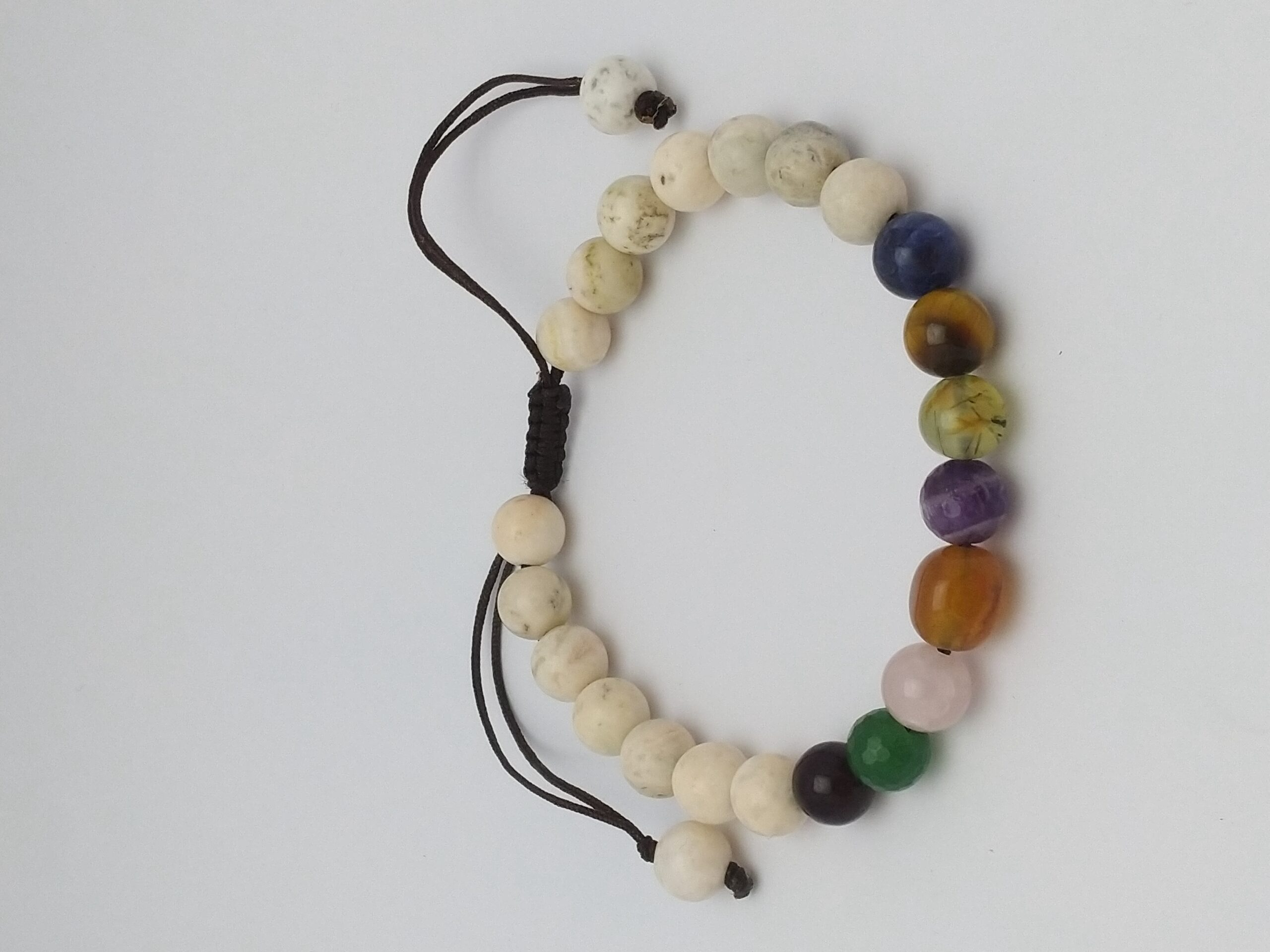 دستبند سنگ هفت چاکرا مدل بافت فری سایز دارای 24 عدد مهره گرد با سنگ های متنوع مناسب خانمها و آقایان می باشد. دستبند اصل ، طبیعی و معدنی با خواص درمانی و سنگ ماه تولد سودالیت و تایگر ، پرنیت ، آمتیست ، عقیق و کوارتز صورتی ، جید و اونیکس است.