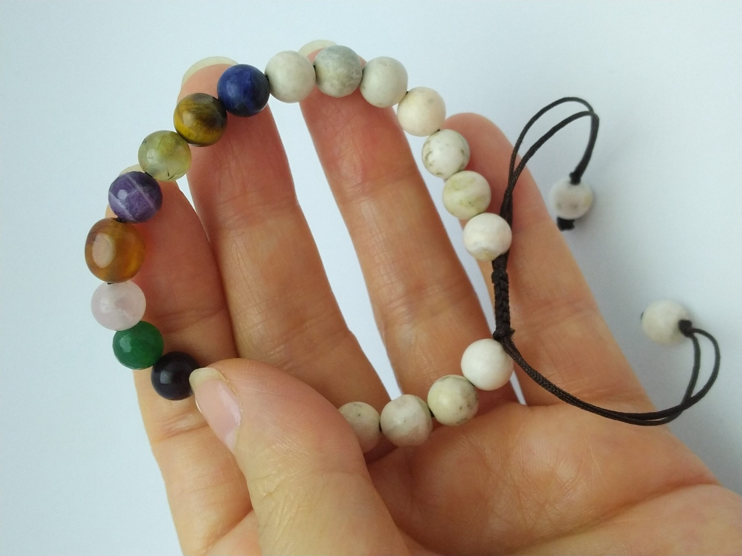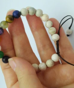دستبند سنگ هفت چاکرا مدل بافت فری سایز دارای 24 عدد مهره گرد وزن 18 گرم مناسب خانمها و آقایان می باشد