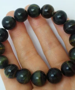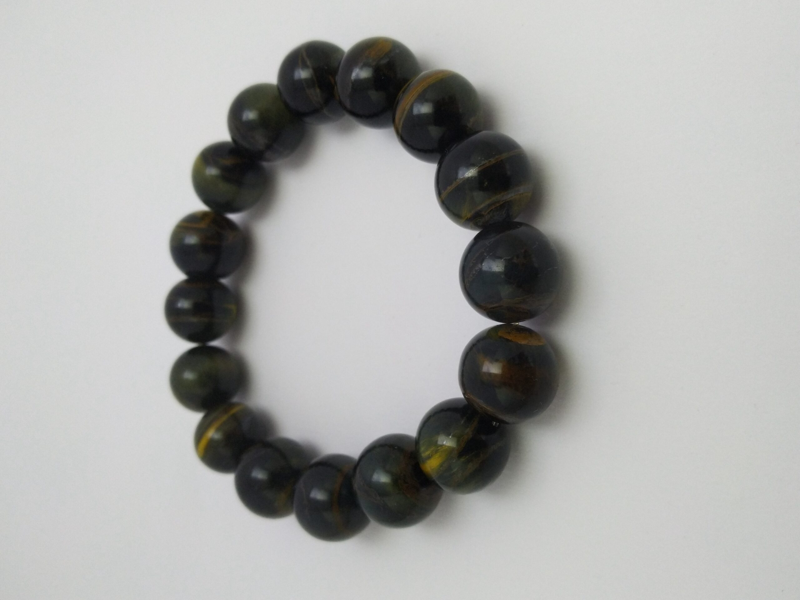 دستبند سنگ چشم شاهین اصل ، طبیعی و معدنی با خواص درمانی ، دارای 16 مهره سایز 10 مدل کشی برای دور مچ تا 19 سانت می باشد