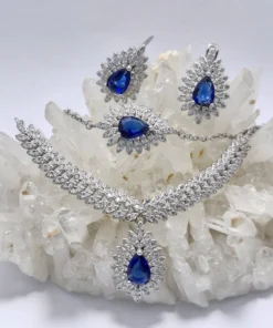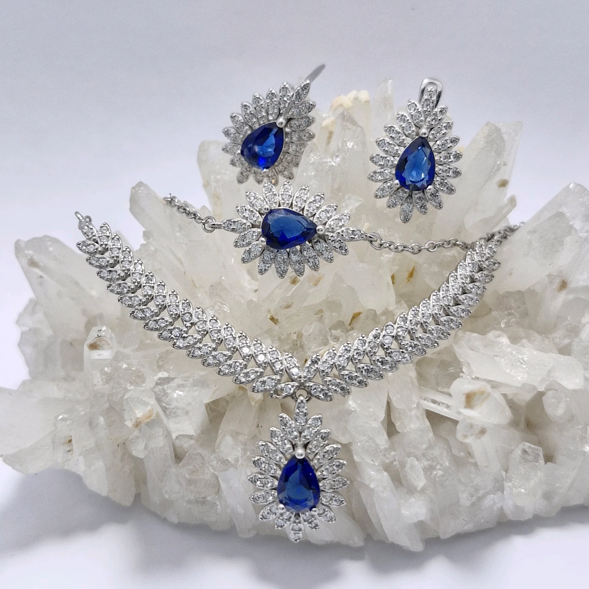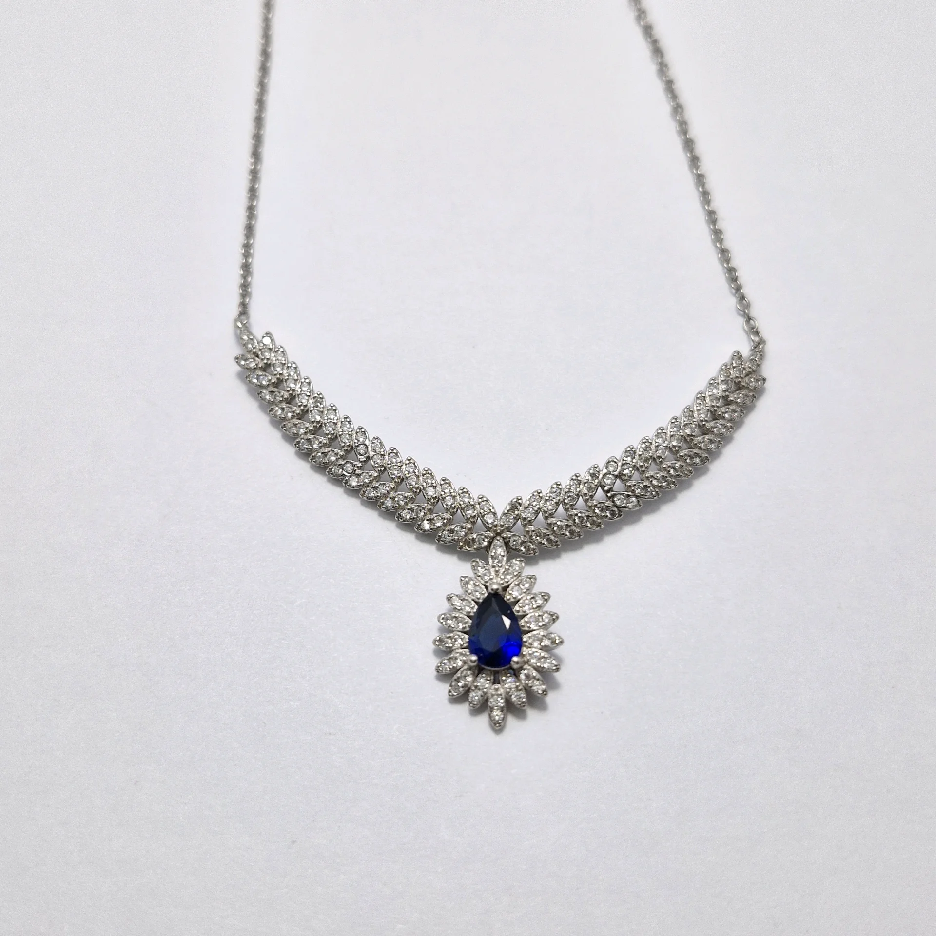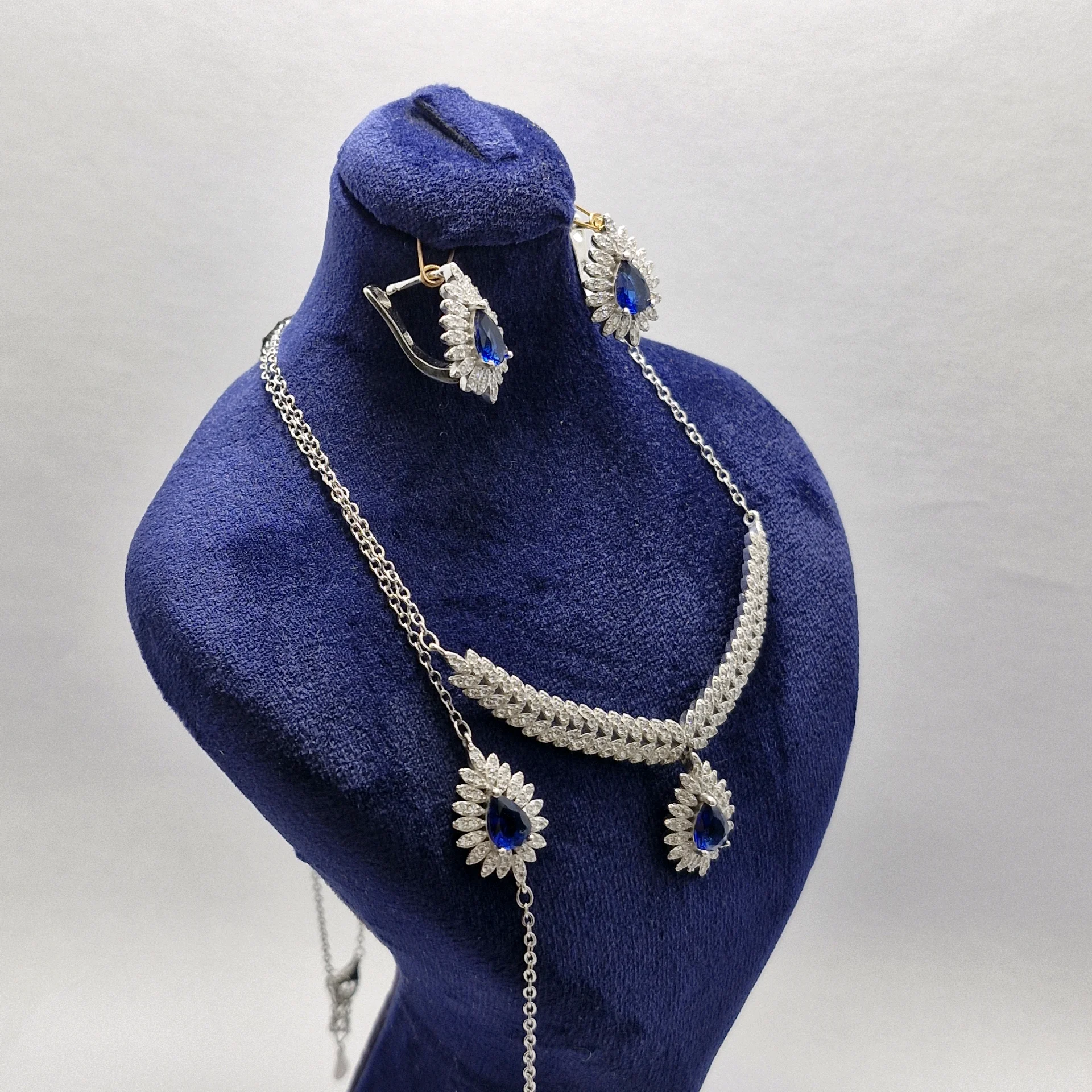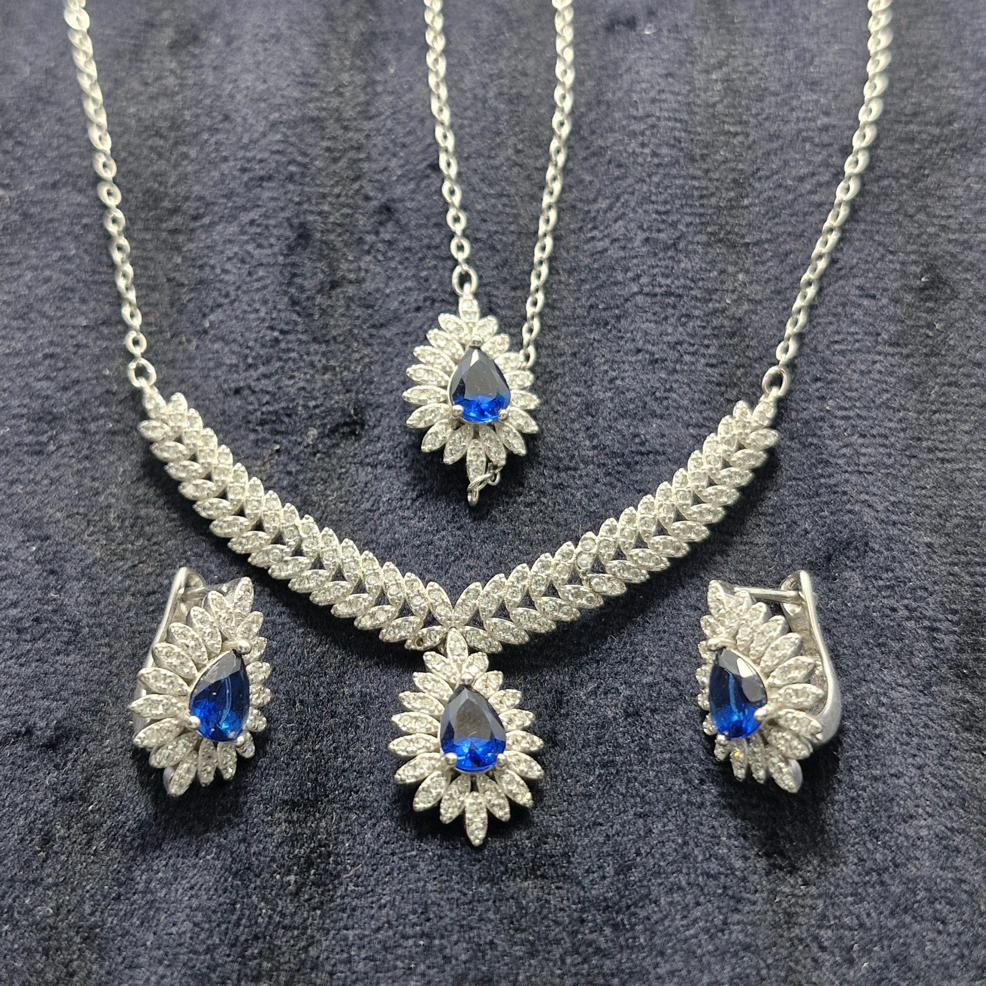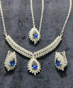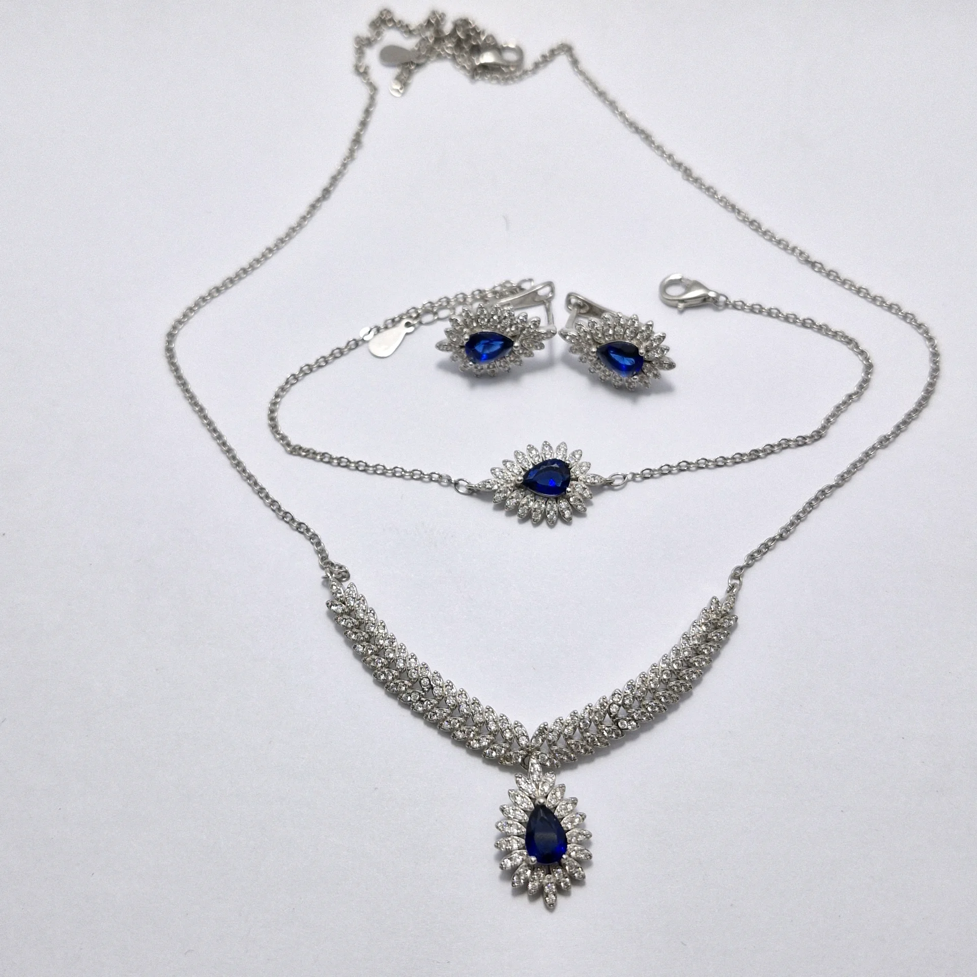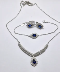 سرویس نقره نگین اتمی آبکاری رادیوم رنگ ثابت ، عیار ۹۲۵ ، این ست شیک و بسیار زیبا شامل گردنبند ، دستبند و گوشواره می باشد. کدZ199 وزن ۱۵ گرم است.